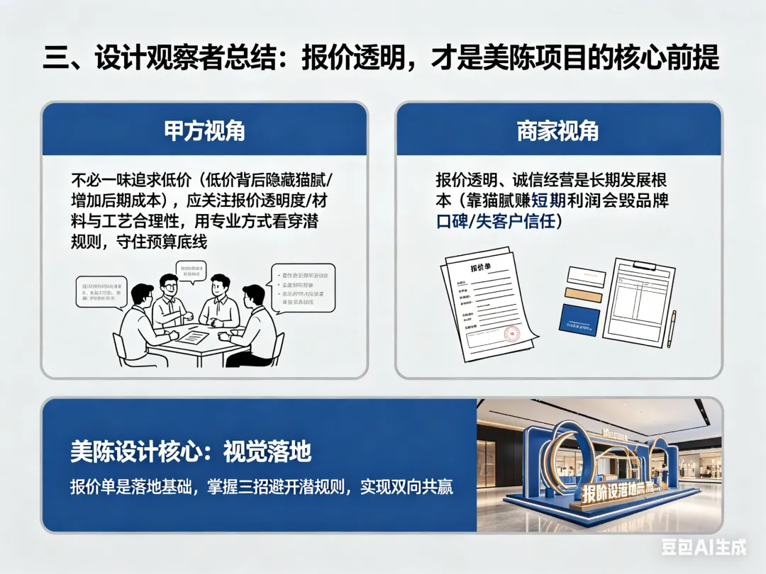 三、设计观察者总结:报价透明,才是美陈项目的核心前提