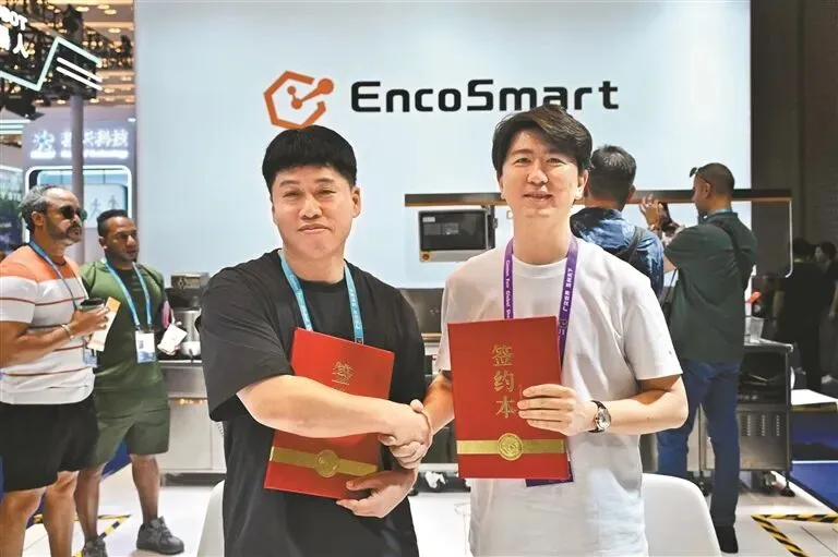 来自韩国的“韩京计划”与享刻智能创始人陈震(右)现场签约。