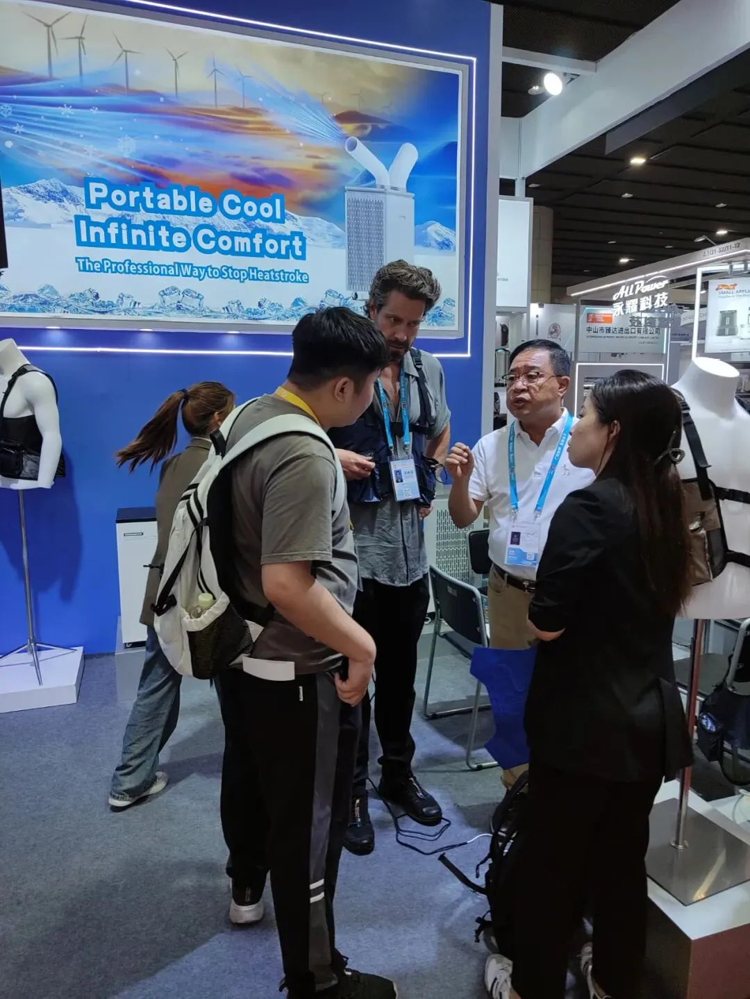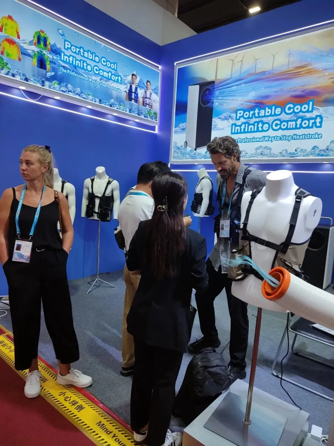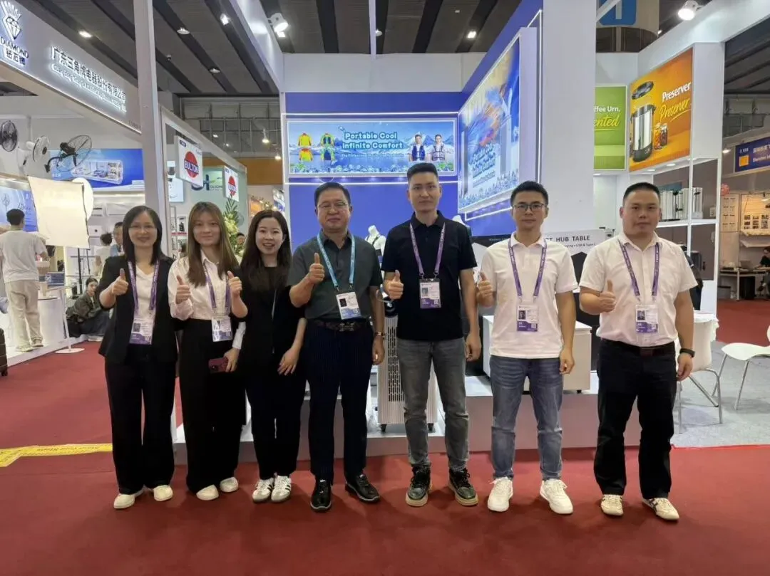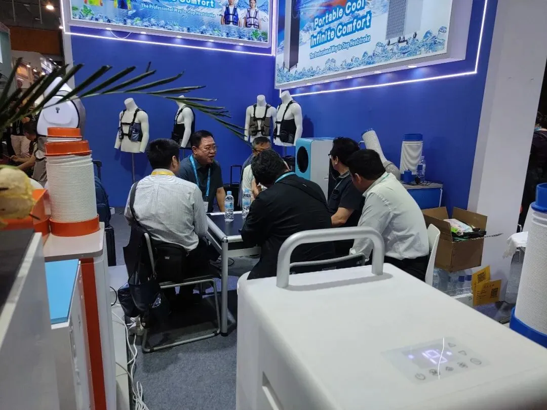 本次展会,我们精选了移动空调多个系列核心产品以及水冷服重磅新品惊艳亮相。产品凭借独特的设计、过硬的品质、超高的性价比,成为现场焦点,吸引了大量客商驻足咨询、拍照留念。咱们的新品降温神衣--水冷空调服更是得到沙特小哥的力推,直接在广交会现场做起了直播,疯狂安利!