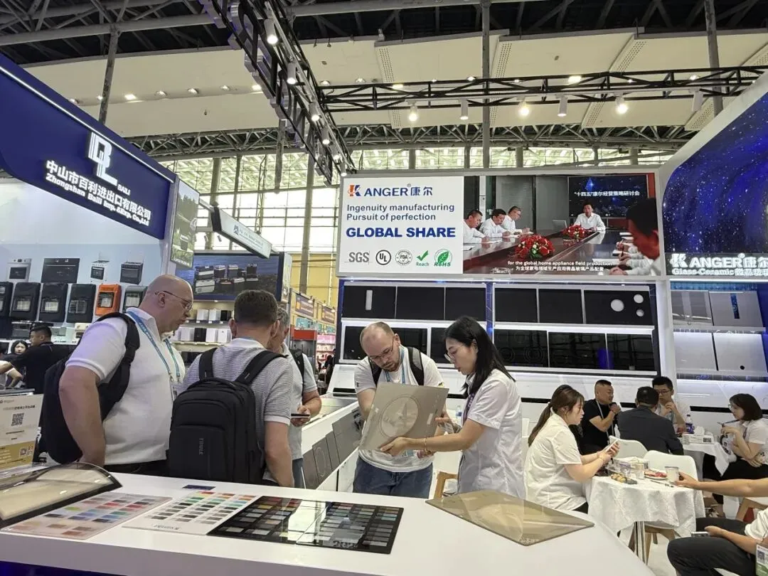 作为全球规模最大的电磁炉、电陶炉面板生产基地,温州市康尔微晶器皿有限公司此次参展底气十足。展位上,伊莱克斯、松下、博世、西门子等全球知名家电品牌的Logo格外醒目,而这些正是康尔微晶的长期战略合作伙伴。