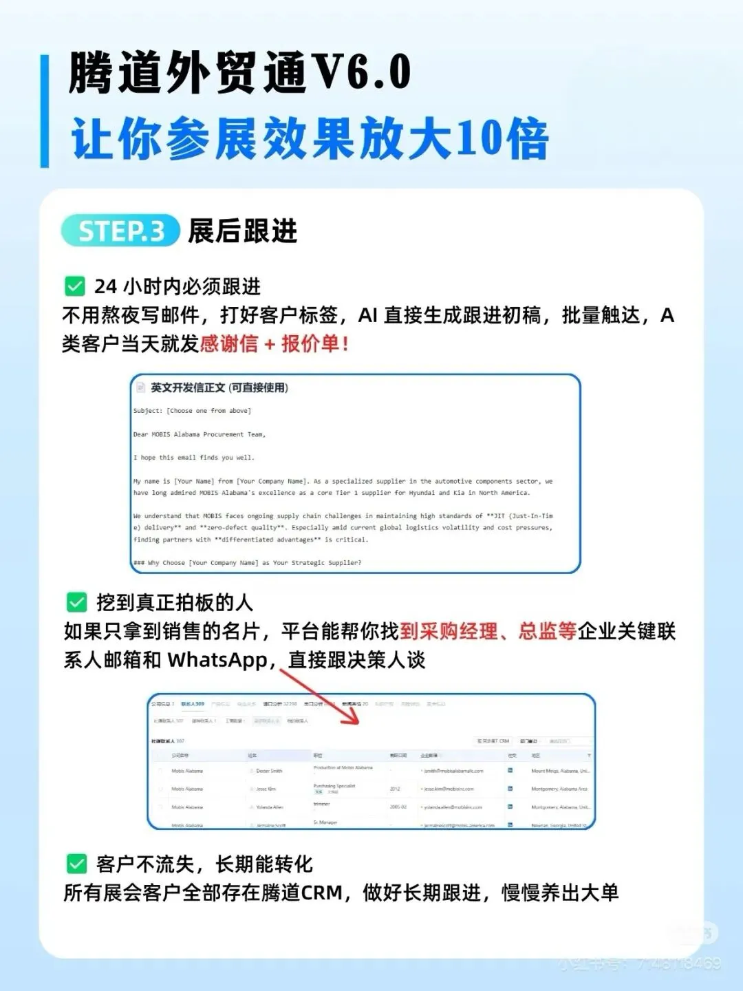 别人在展会结束当晚,就发出带产品参数、报价、细节回忆的跟进邮件,你还在整理一叠名片,纠结措辞、修改模板;