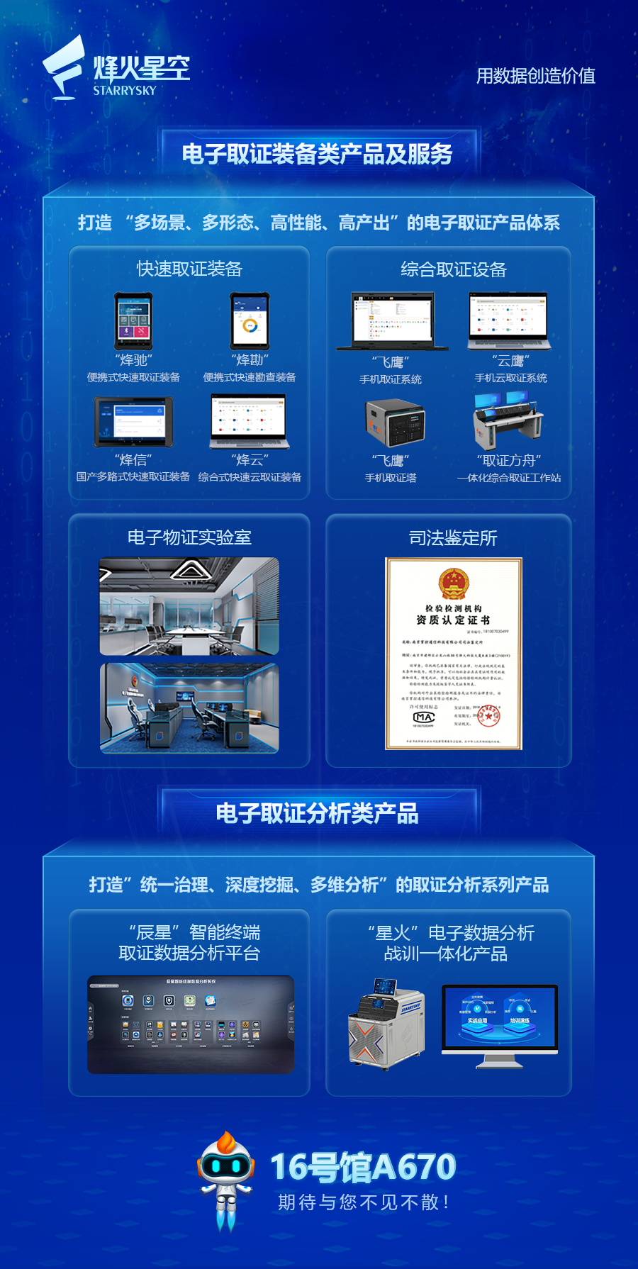 5月16-18日,深圳国际智能安防展将在深圳国际会展中心(宝安)隆重举办。烽火星空将携电子取证系列产品和解决方案盛装亮相本次展会,诚邀您届时莅临现场参观指导及业务交流!