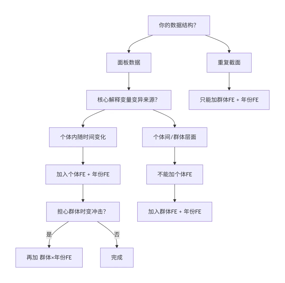 ✅ 五、固定效应选择的“决策树”