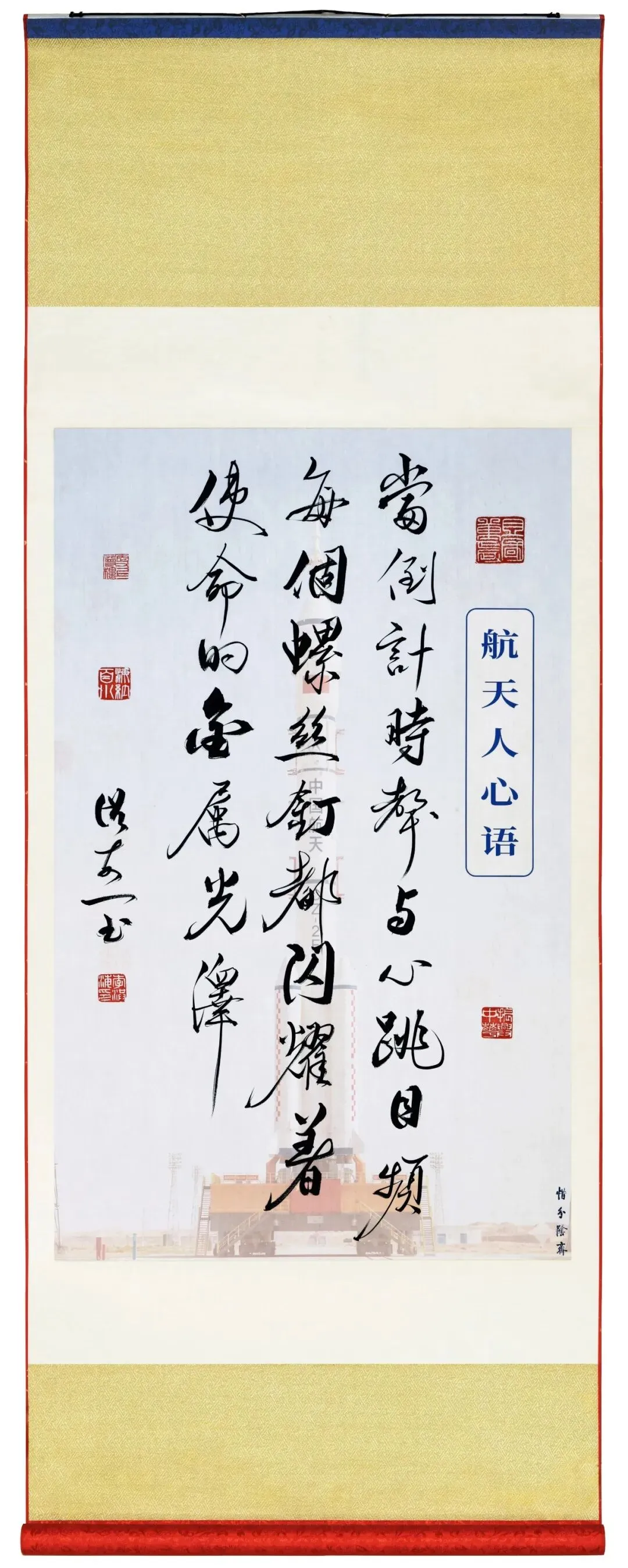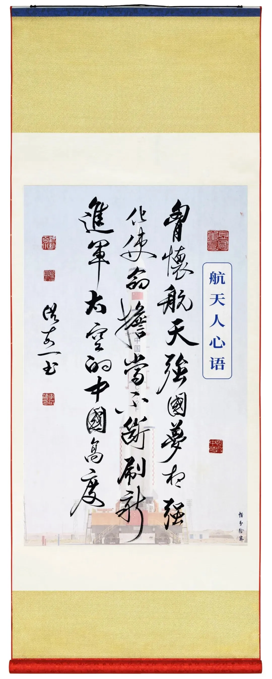 今年是中国航天事业创建七十周年。70年来中国航天事业栉风沐雨、勇毅前行,一代代航天人以深厚的家国情怀接续奋斗,在浩瀚苍穹创造中国奇迹,铸就不朽的航天丰碑。书法家李洪海以笔墨为媒,融翰逸神飞的书法艺术与波澜壮阔的航天梦想,串联起航天梦的文化血脉,以航天精神铸造航天文化精品。让航天强国的宏大篇章转释为可感、可思、可赏的件件艺术作品愿我们共同在笔墨间感悟航天人的初心使命,弘扬伟大航天精神,为筑就航天强国梦贡献智慧和力量。感谢您支持,谢谢您的关注和分享!