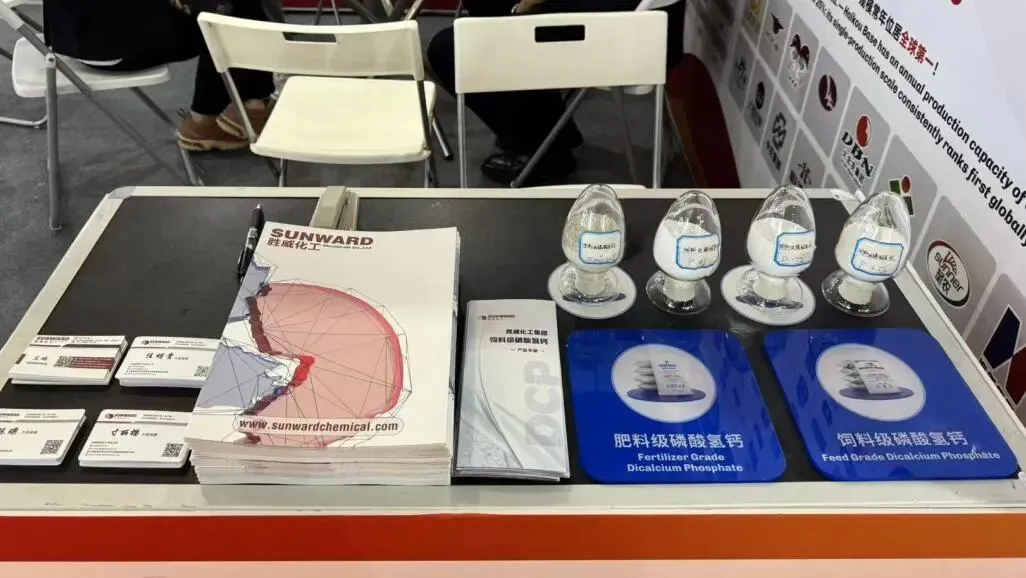 展会现场,胜威化工技术团队与往来客商展开了高频互动。面对行业对产品性能日益严苛的要求,团队详细拆解了“胜威牌”磷酸氢钙产品的关键参数。