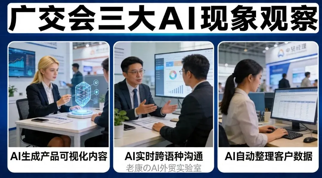 往届广交会,展位竞争主要看产品款式、价格、交货期。这届广交会,我发现一个明显变化——带AI演示系统的展位,流量是传统展位的3-5倍。有家做包装机械的工厂,展位上放了个大屏幕,客户说需求,系统自动生成技术参数表、3D渲染图、报价方案,全程不用销售手动操作。老外现场看完演示,当场就要了样品。你以为国内企业学AI很快?错了。这届广交会上,我发现一个有趣的现象——来自欧美、中东的老外客户,很多都带着AI助手来参会。有个德国采购商跟我说,他来广交会之前,已经用AI工具筛选了300家国内供应商,到了现场只挑TOP 20谈。效率极高。往届广交会,翻译是刚需。这届我发现,很多展位用上了实时翻译AI。英语、西班牙语、俄语、阿拉伯语,实时互译准确率在90%以上。不是说翻译完全被替代,而是企业不需要那么多专职翻译了。1.2 为什么今年是转折点?