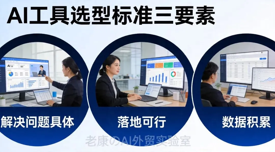 很多人对AI有误解,要么觉得AI万能要取代自己,要么觉得AI是噱头没用。它能做的:重复性工作、数据整理、信息检索、文案生成。它不能做的:客户关系维护、复杂谈判、创意决策、情感连接。所以外贸人要做的不是学AI的所有能力,而是找到AI能帮你提效的那20%工作,集中火力。3.2 工具选型:不是越贵越好