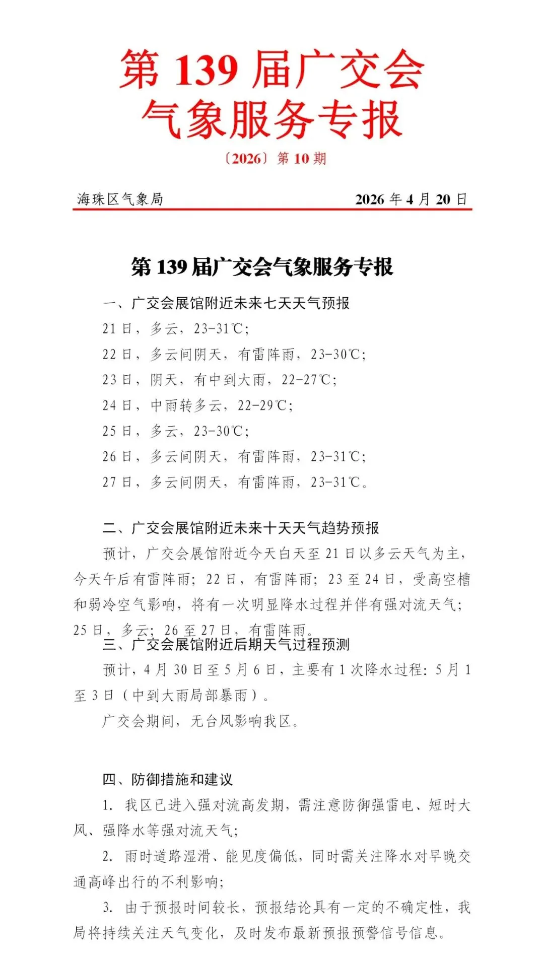 【广交会专栏】@二期参展企业,降水将至,这份出行提醒请查收