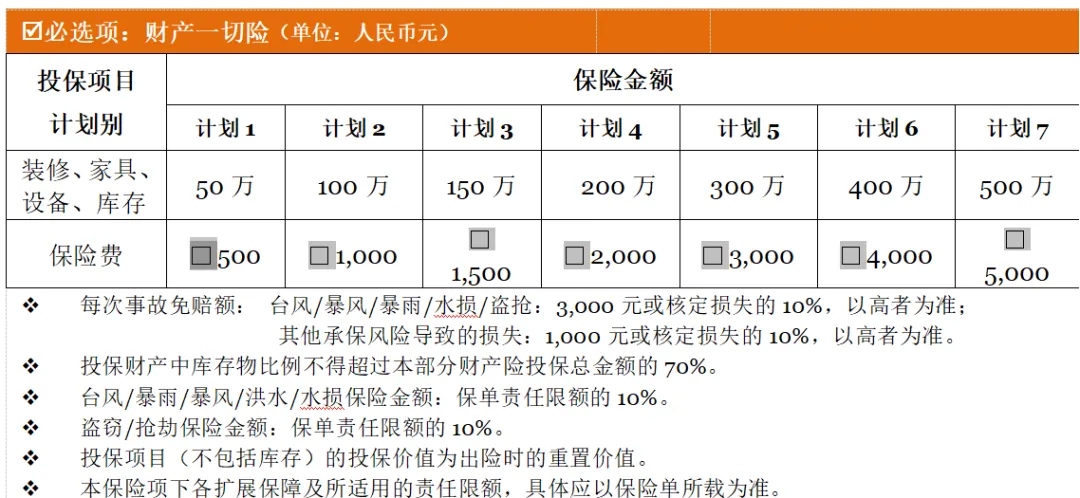 比方说,电器线路老化、短路、过载,装修不当、员工吸烟引发火灾;暴雨导致店铺进水,水管爆裂导致店铺发生浸泡; 商铺玻璃门窗被破坏;商铺现金、物品被盗等等,都是物损风险;