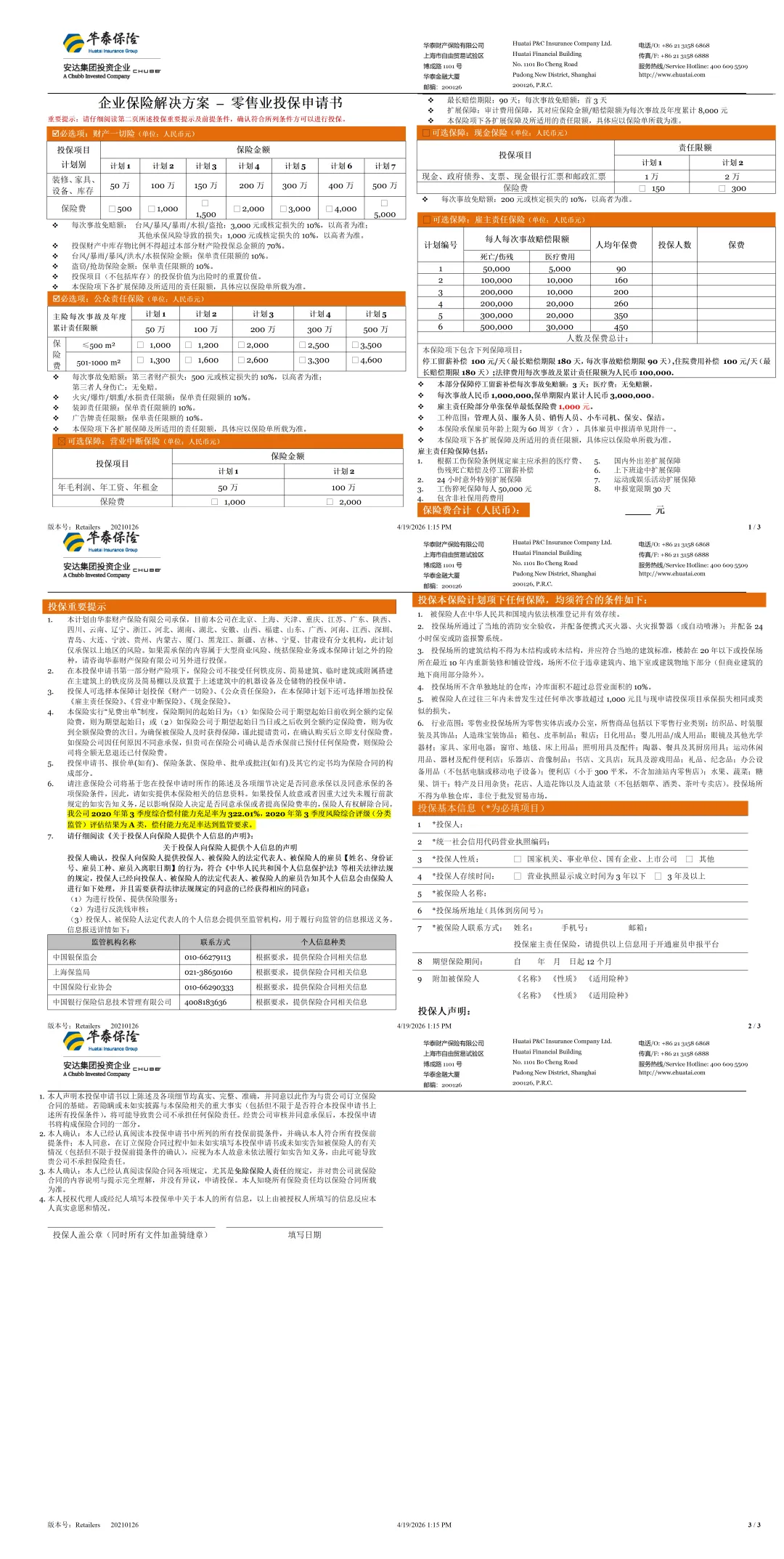 零售业投保场所为零售实体店或办公室,所售商品包括以下零售行业类别: