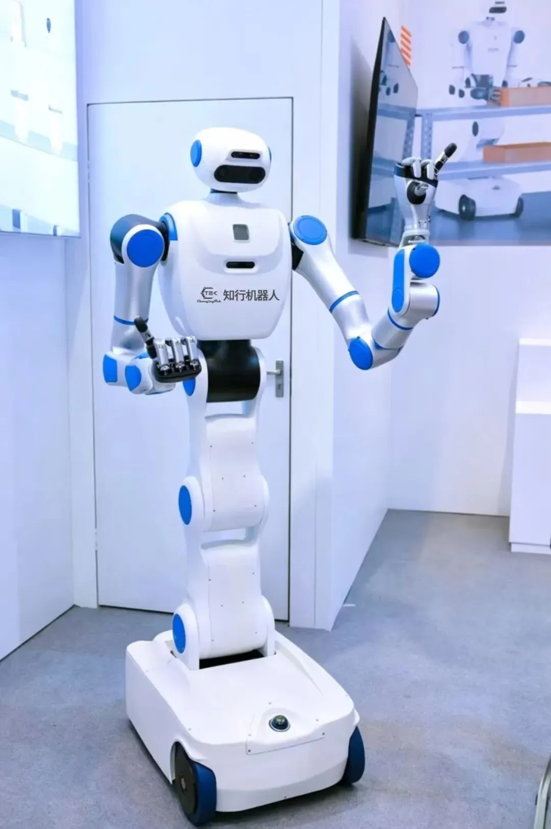 “你好,我是撼岳!”在知行机器人展位上,人形机器人“撼岳”一出场就引起围观。这款全身搭载20余个高精度驱动关节的机器人,既能扛起30公斤重物完成物流搬运,也能以亚毫米级精度执行零件装配、螺丝旋拧等精细操作。“从工厂的柔性生产、实验室的试剂处理,到商场的货物上架、园区的安防巡检,我都能胜任。”“撼岳”一边“自我介绍”,一边灵活地挥手致意,逗笑了不少围观客商,大家都抢着和它交朋友。