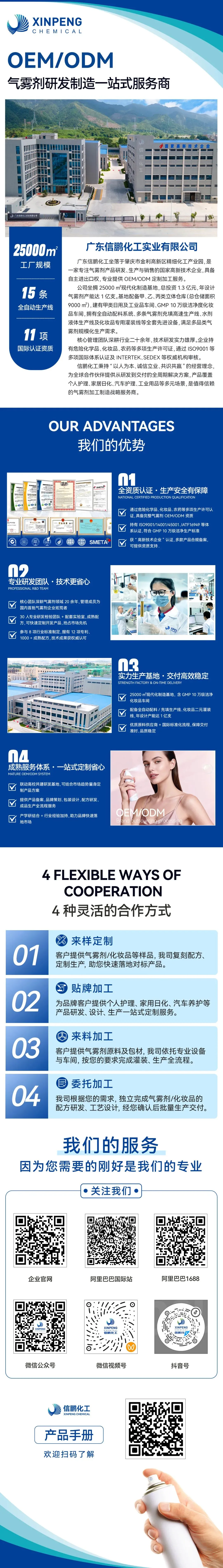 依托专业生产实力与成熟定制服务,信鹏化工聚焦全球家居消费需求,带来多款高品质、高适配性家居护理气雾剂产品,全方位满足海内外客商采购及代工合作需求,解锁家居日用品类商贸新商机。