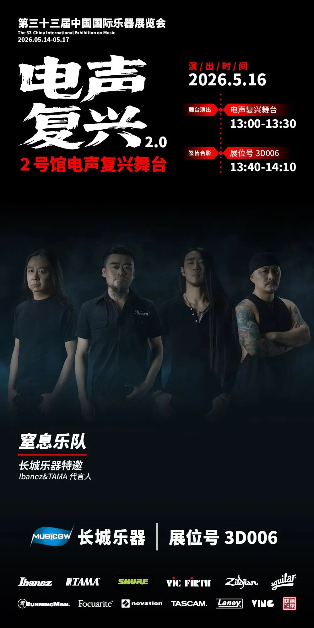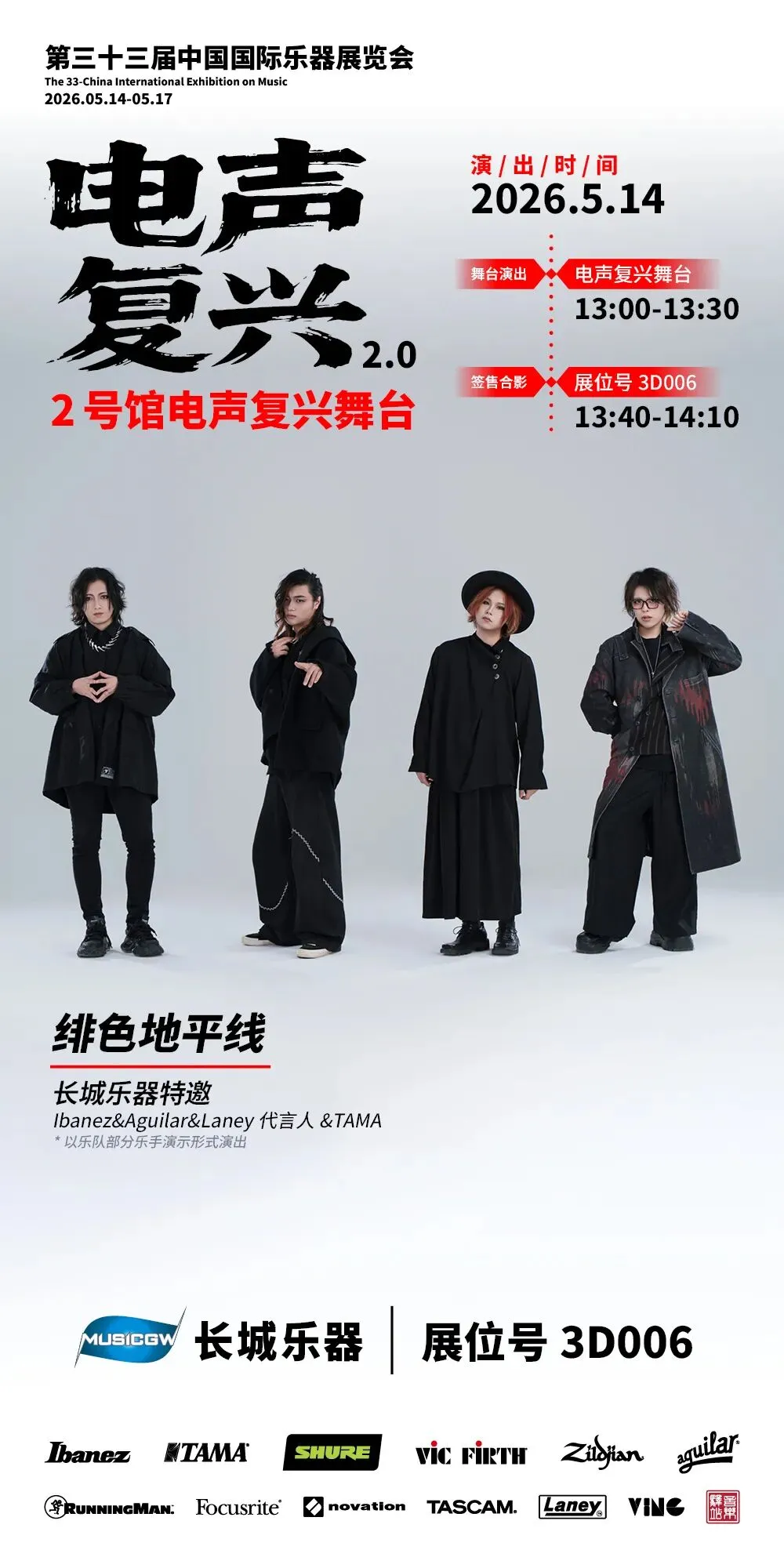 同时展会继续开辟2号馆(紧邻电声馆)单独场馆为厂商提供展演超大舞台,并由吉他中国整体运营制作,今年乐队阵容更加强大,2026年主题为:电声复兴2.0!