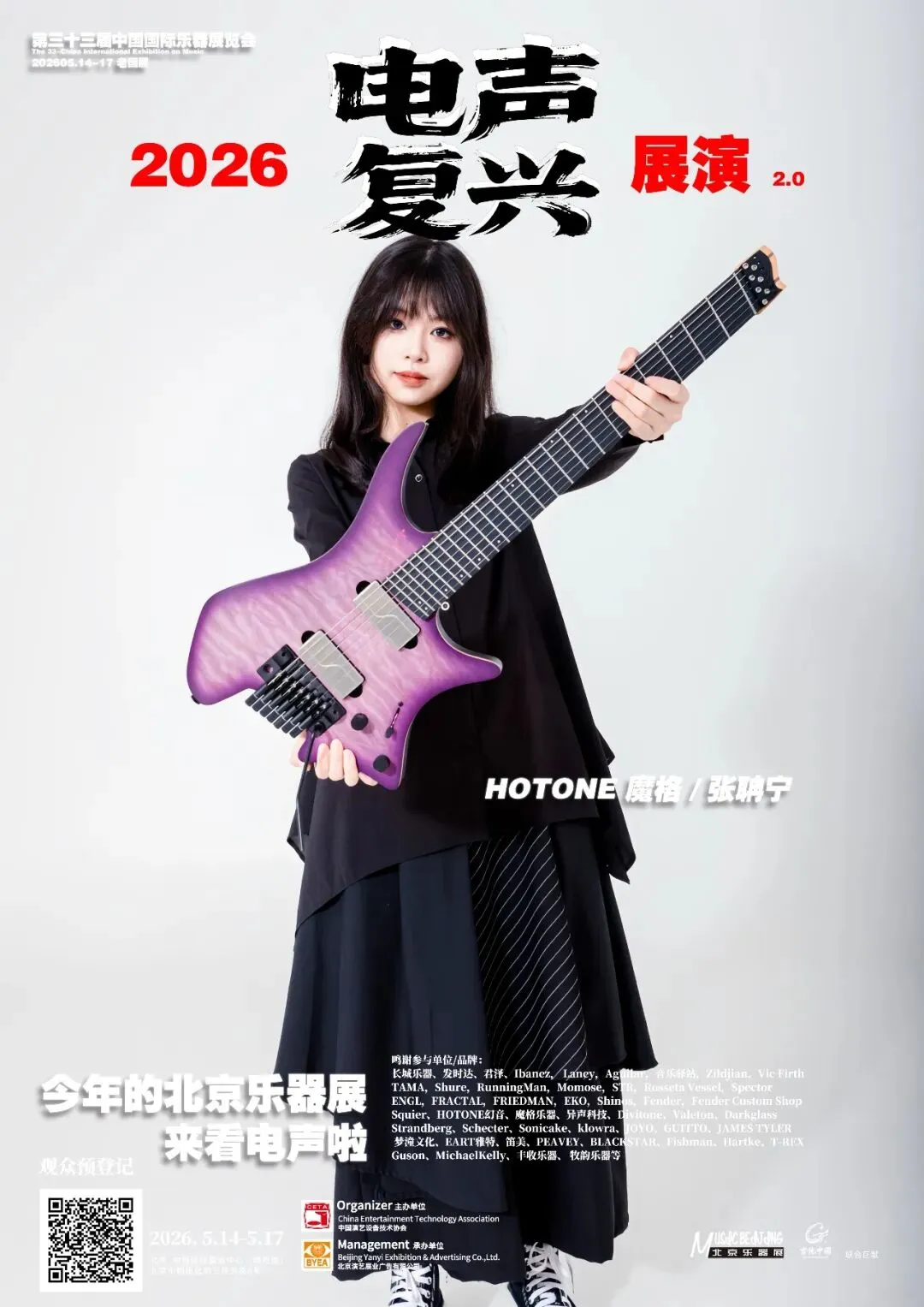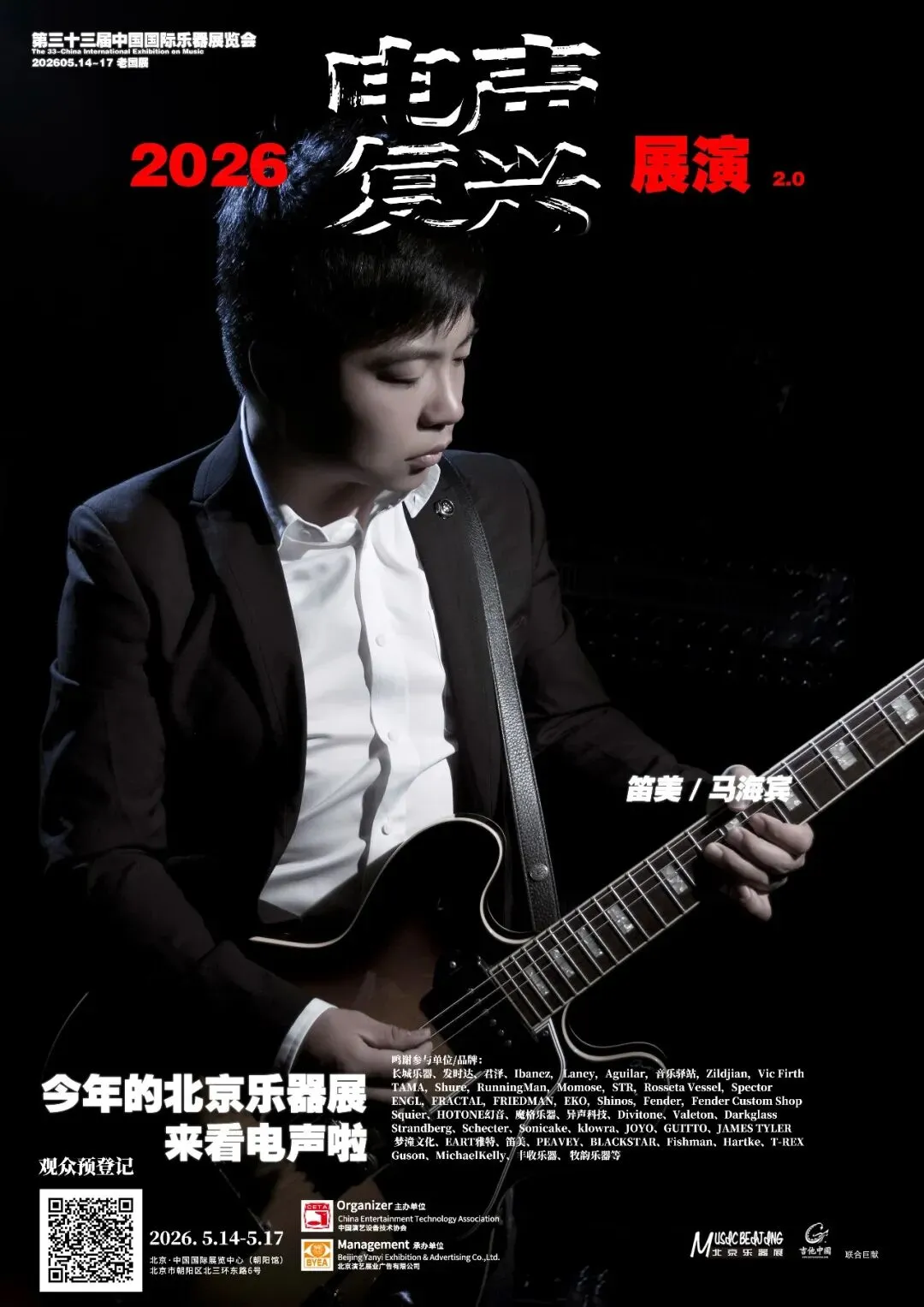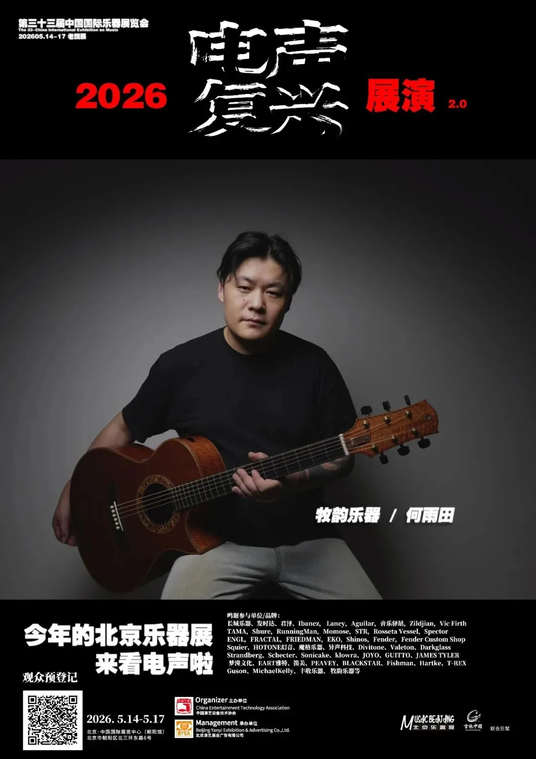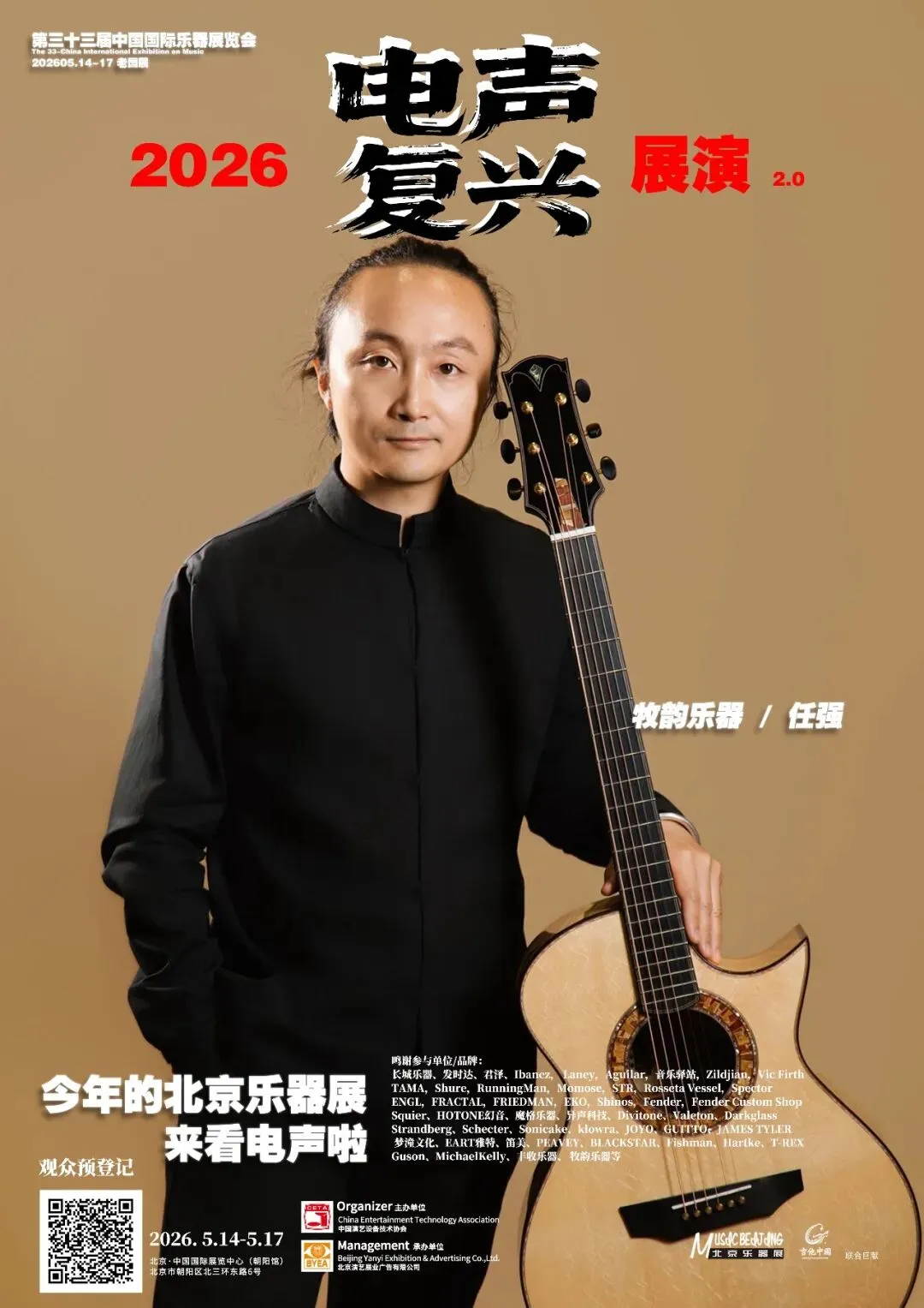 2026第三十三届中国国际乐器展览会(北京国际乐器展)将于2026年5月14-17日在北京老国展继续举行,2026依然主打电声,展会继续与吉他中国合作,推出3号馆为电声馆,目前已经确认参展单位与品牌(排名不分先后):