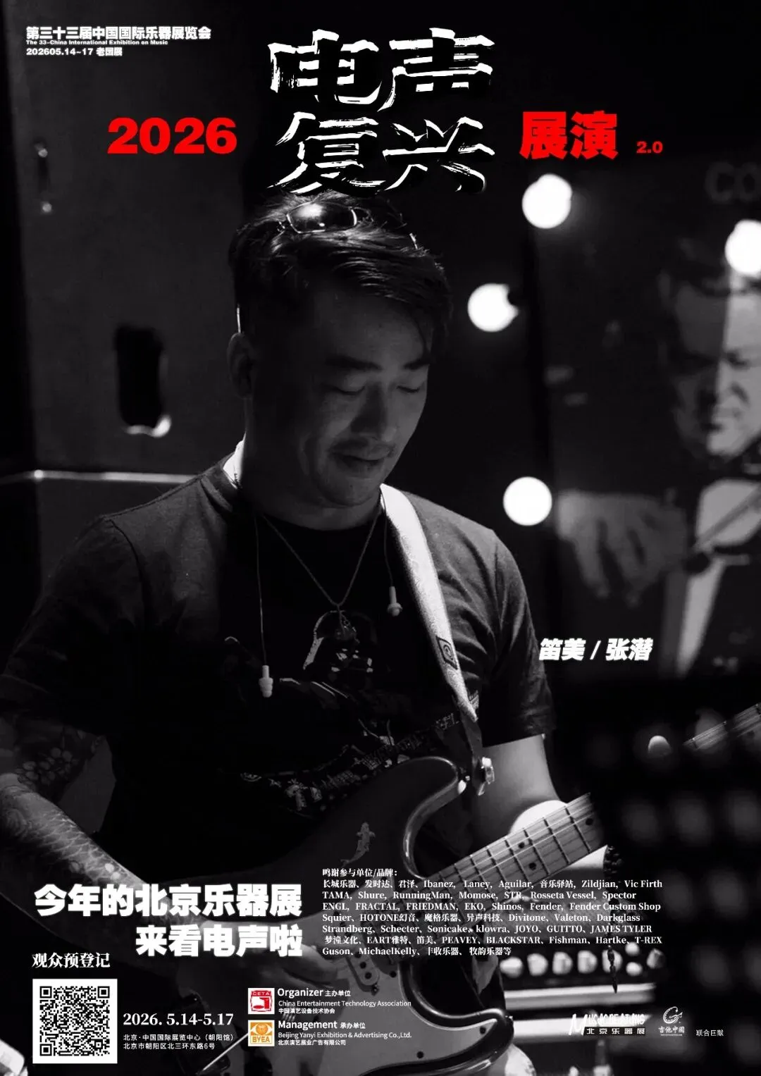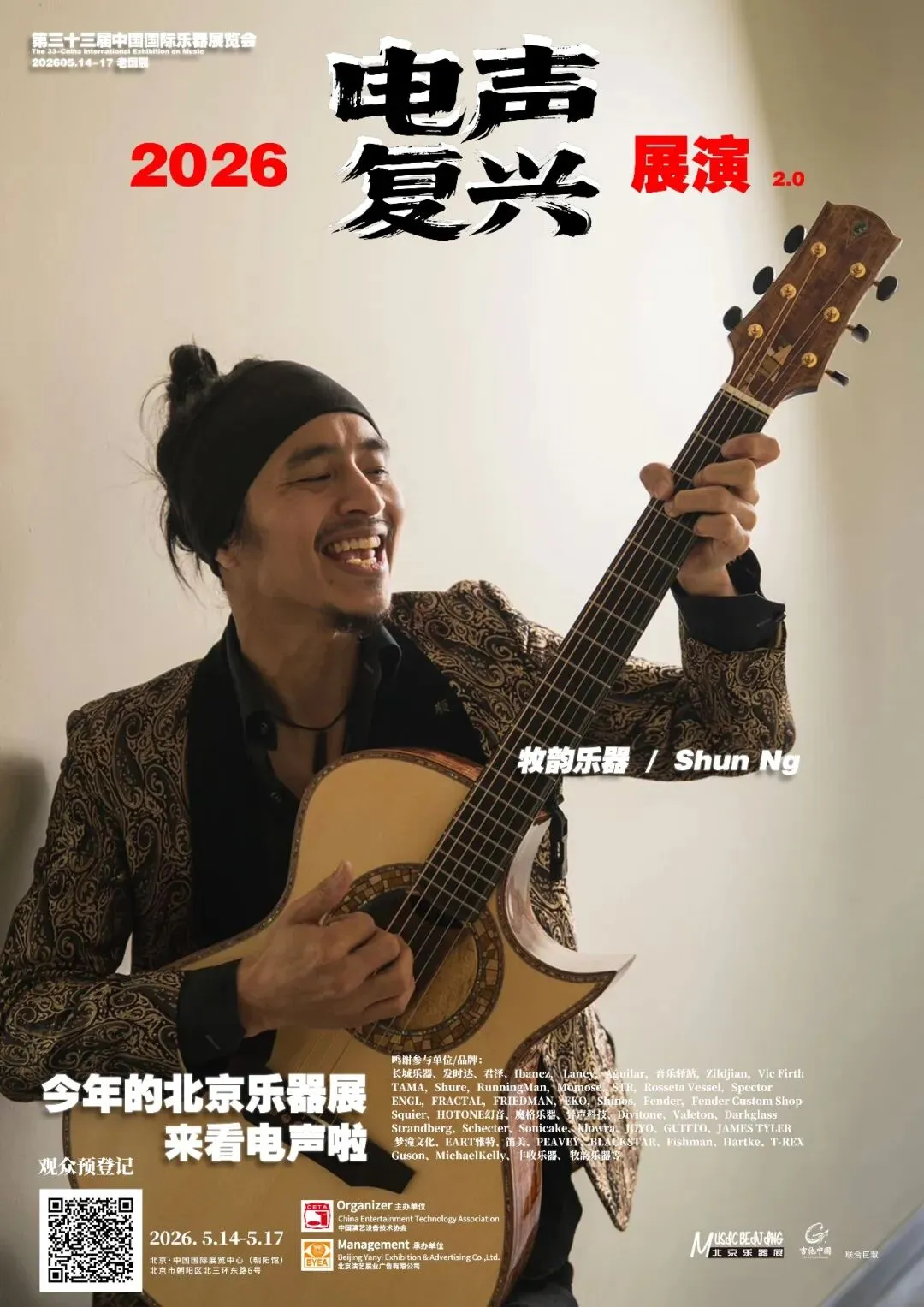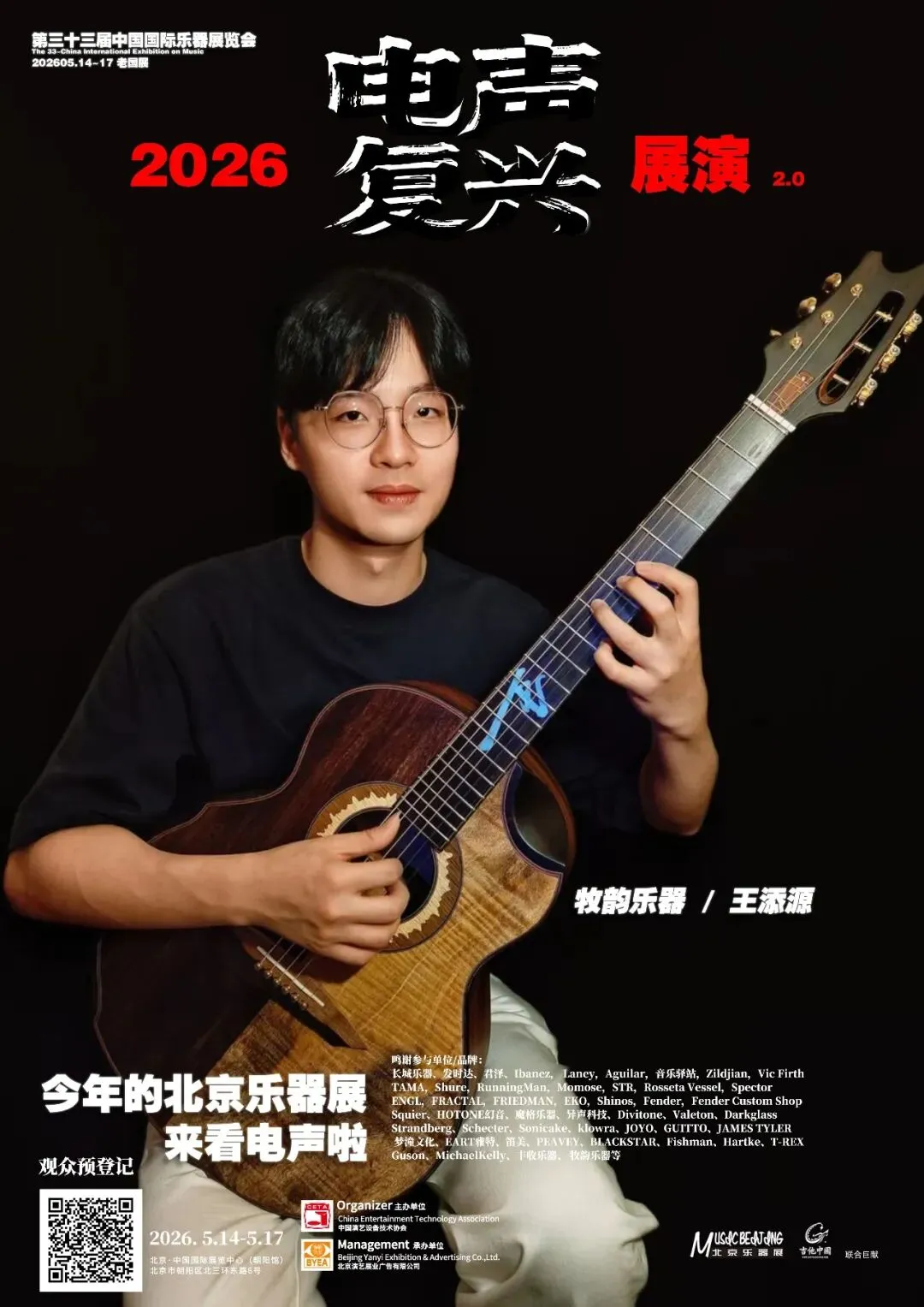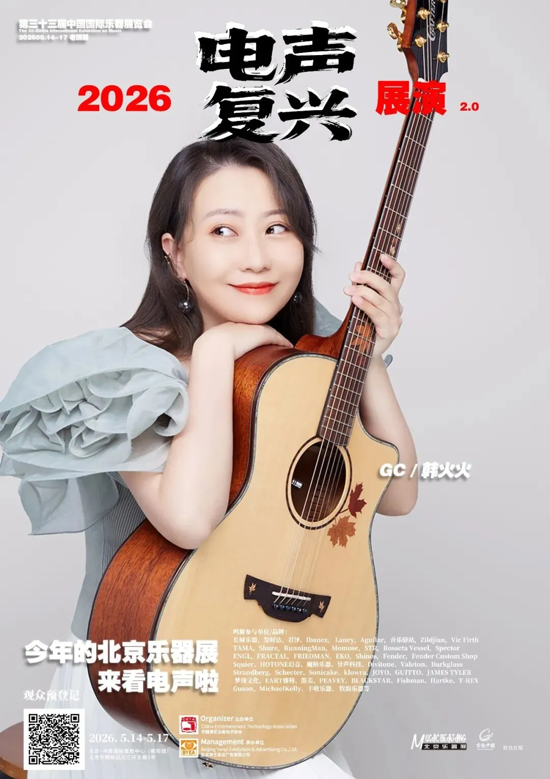 2026第三十三届中国国际乐器展览会(北京国际乐器展)将于2026年5月14-17日在北京老国展继续举行,2026依然主打电声,展会继续与吉他中国合作,推出3号馆为电声馆,目前已经确认参展单位与品牌(排名不分先后):