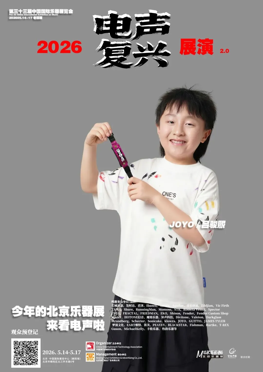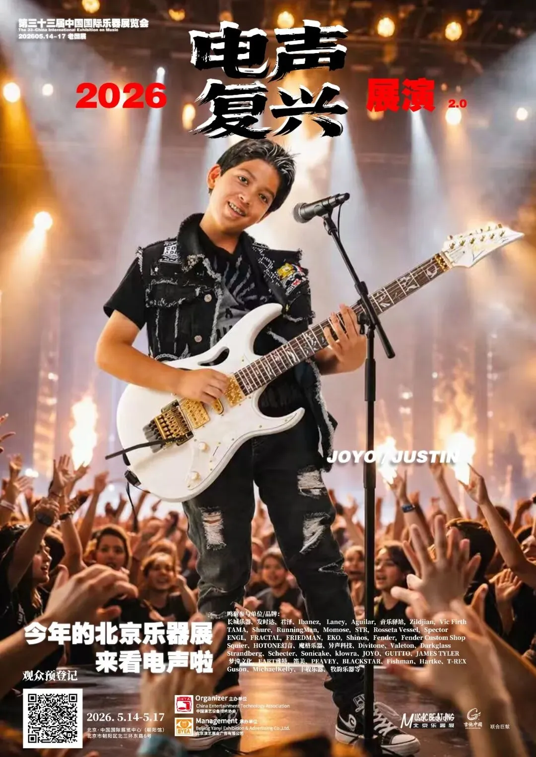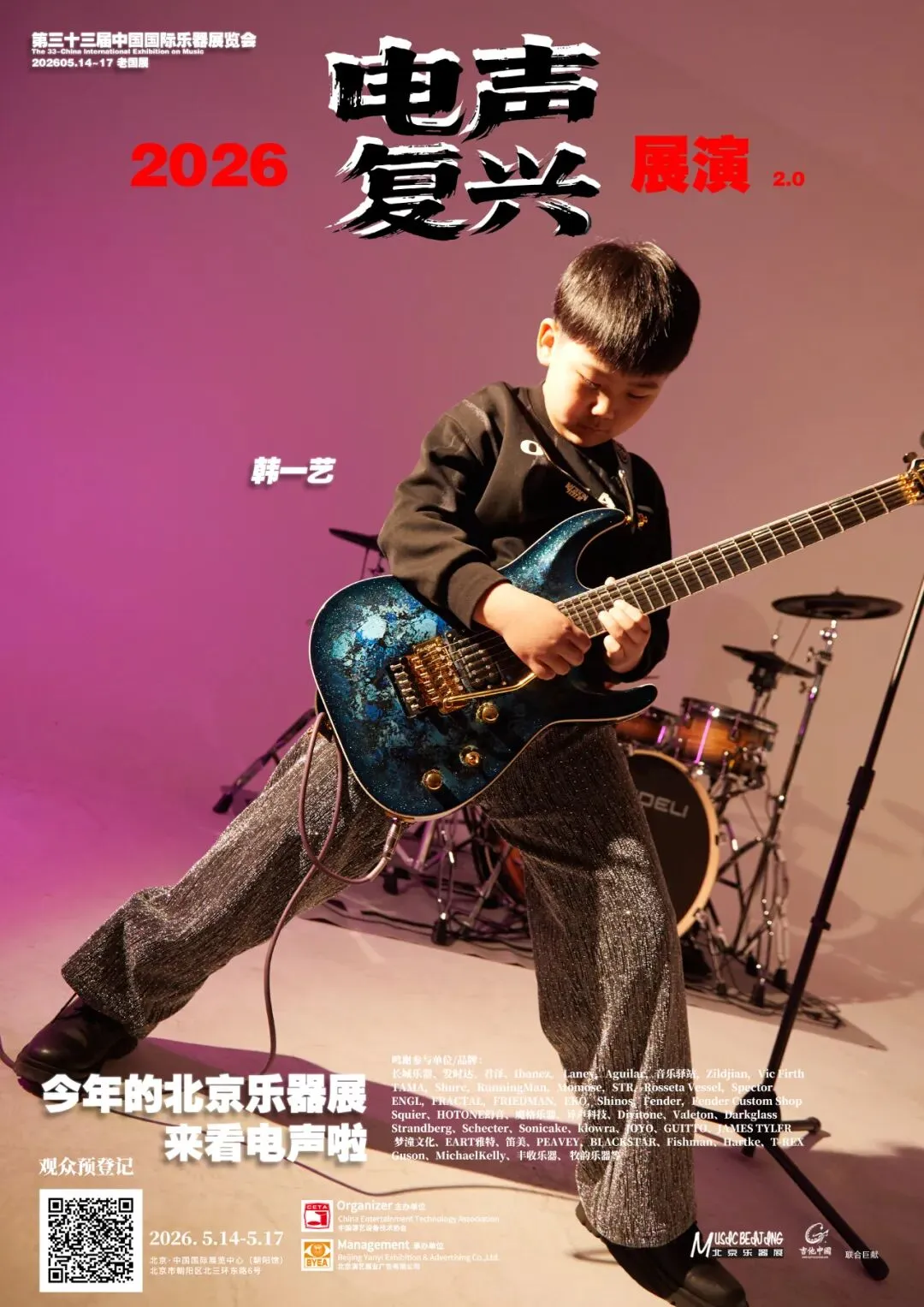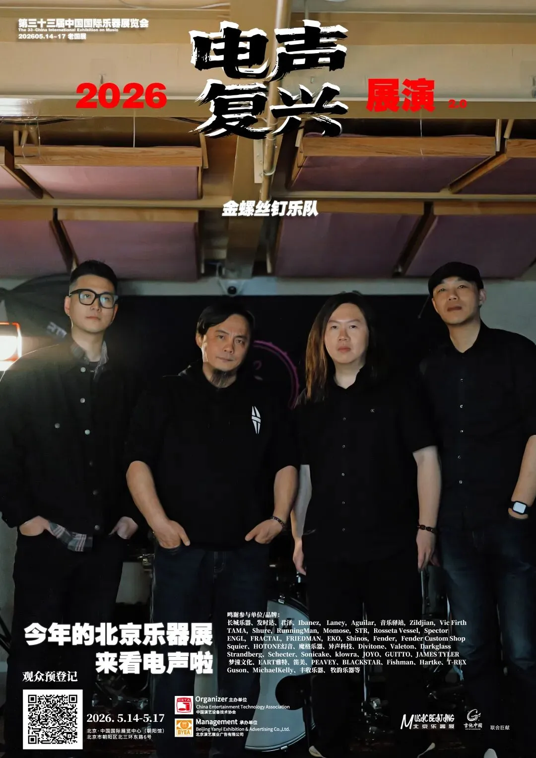 2026第三十三届中国国际乐器展览会(北京国际乐器展)将于2026年5月14-17日在北京老国展继续举行,2026依然主打电声,展会继续与吉他中国合作,推出3号馆为电声馆,目前已经确认参展单位与品牌(排名不分先后):