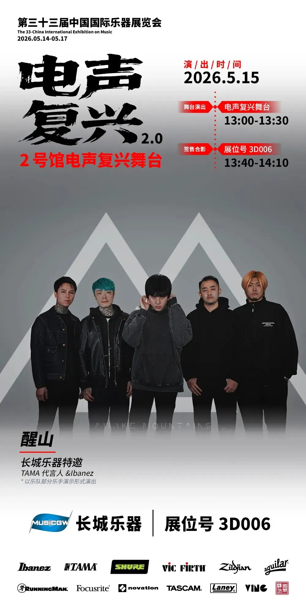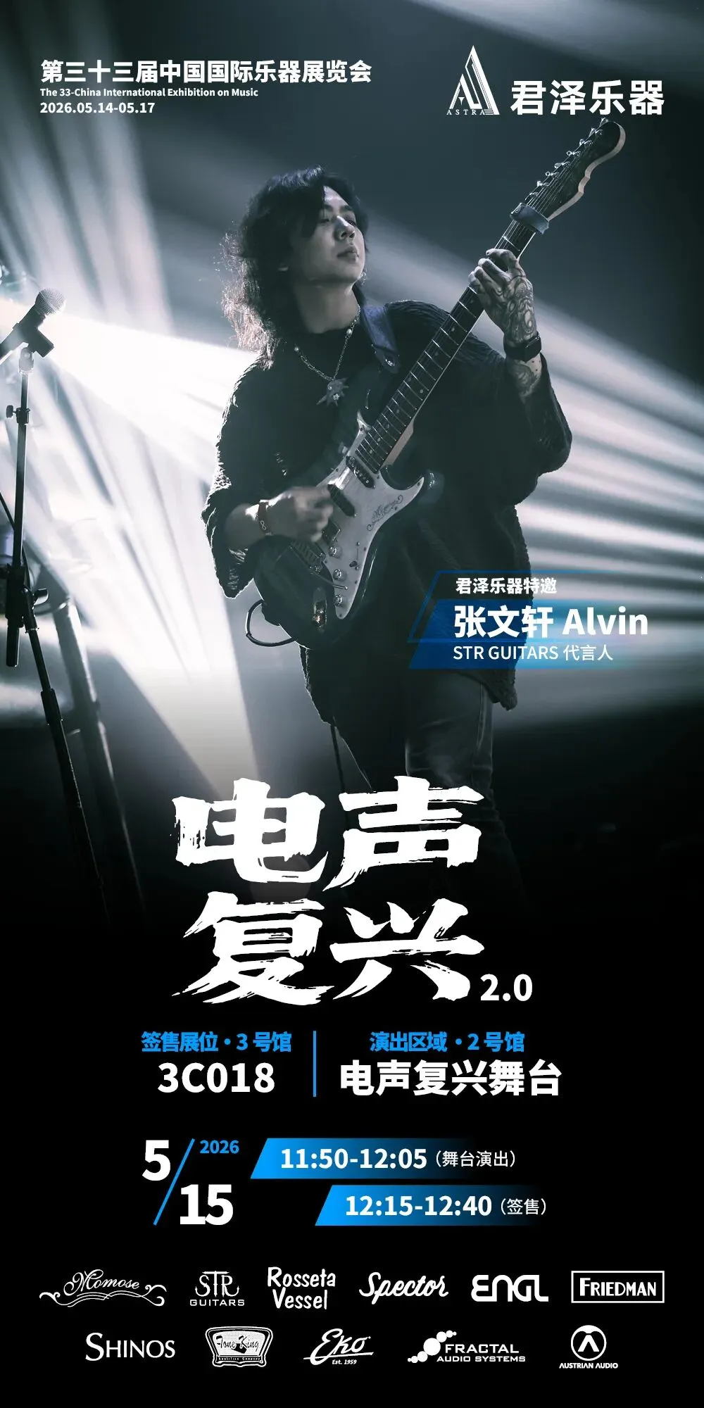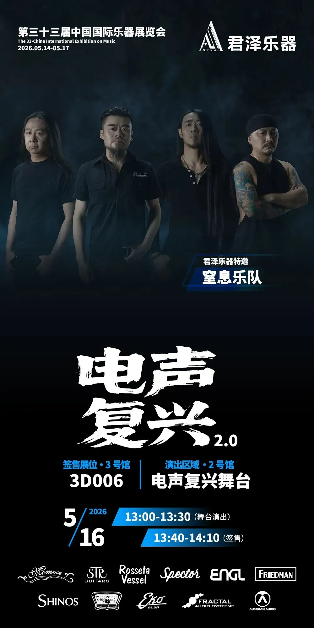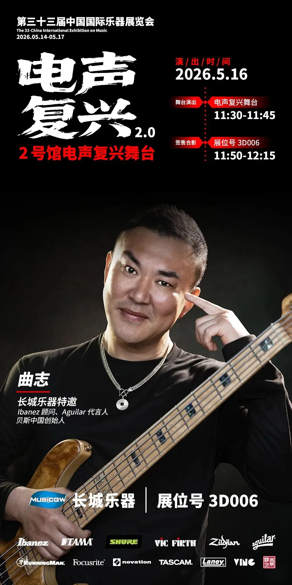 2026第三十三届中国国际乐器展览会(北京国际乐器展)将于2026年5月14-17日在北京老国展继续举行,2026依然主打电声,展会继续与吉他中国合作,推出3号馆为电声馆,目前已经确认参展单位与品牌(排名不分先后):