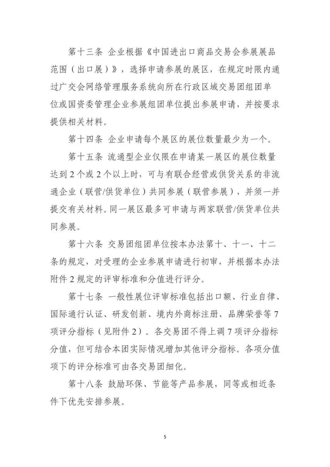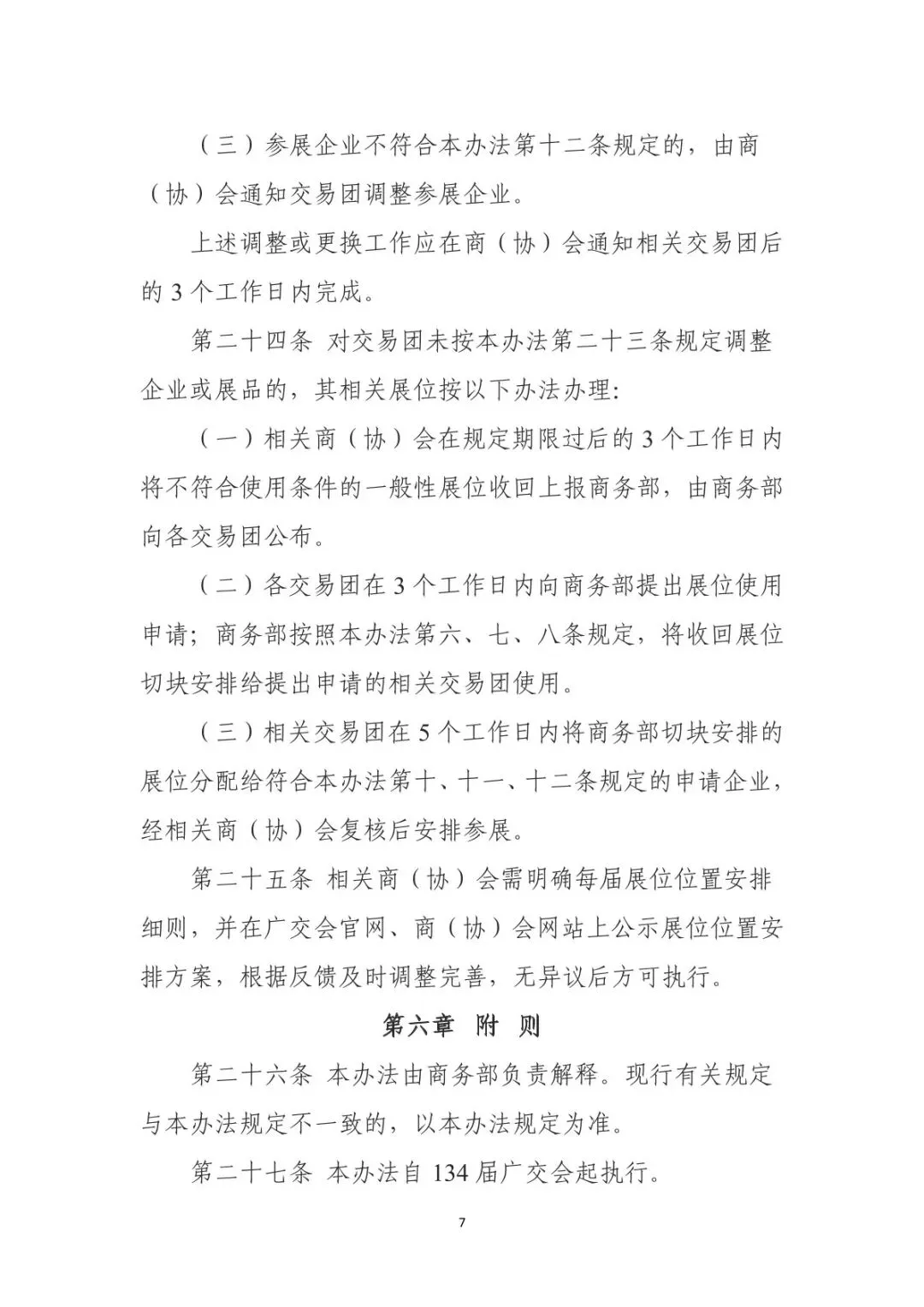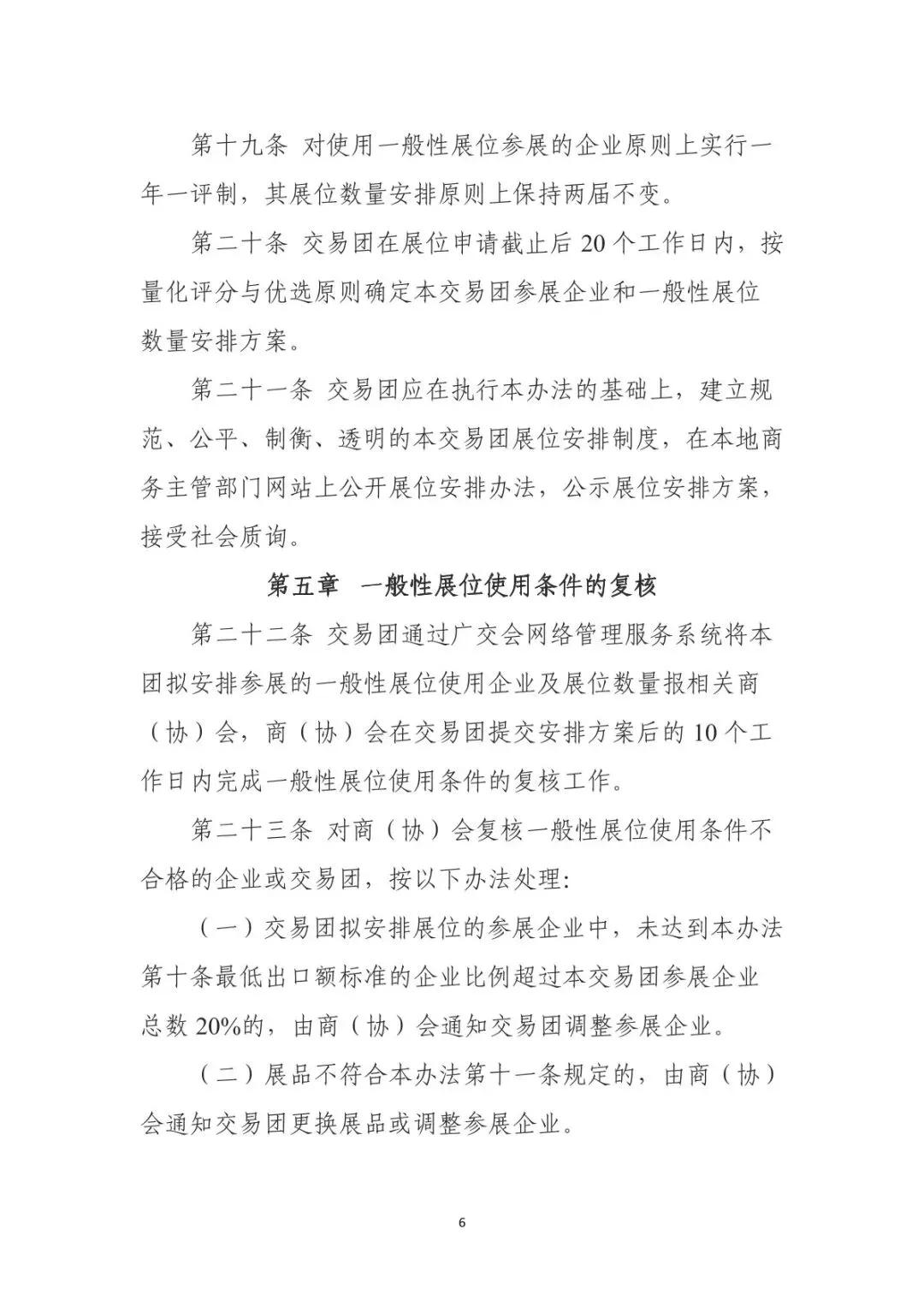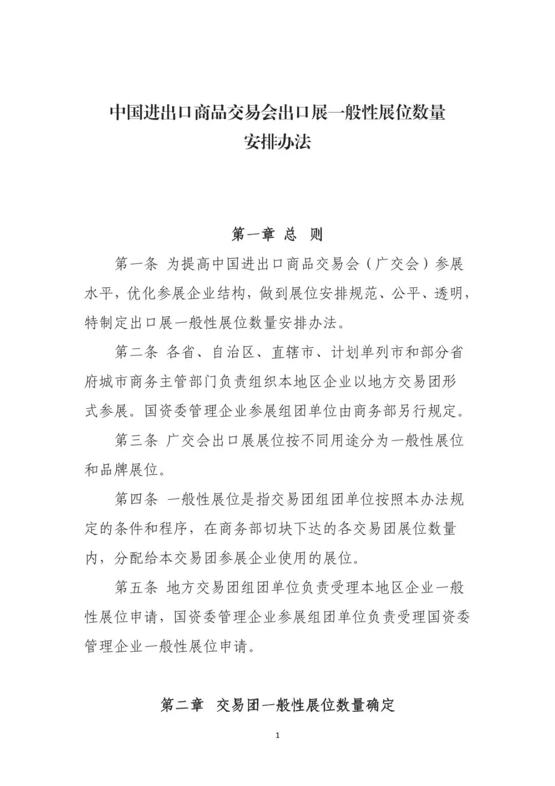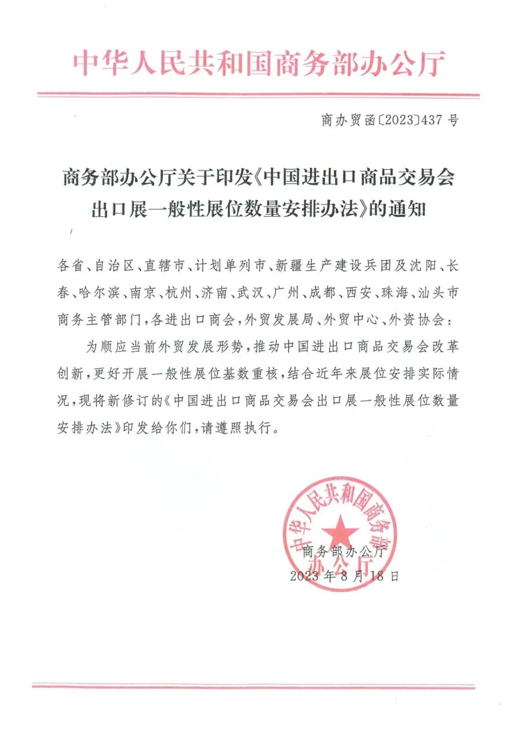 《中国进出口商品交易会出口展一般性展位数量安排办法》全文(2023年8月18日)