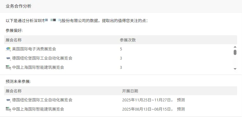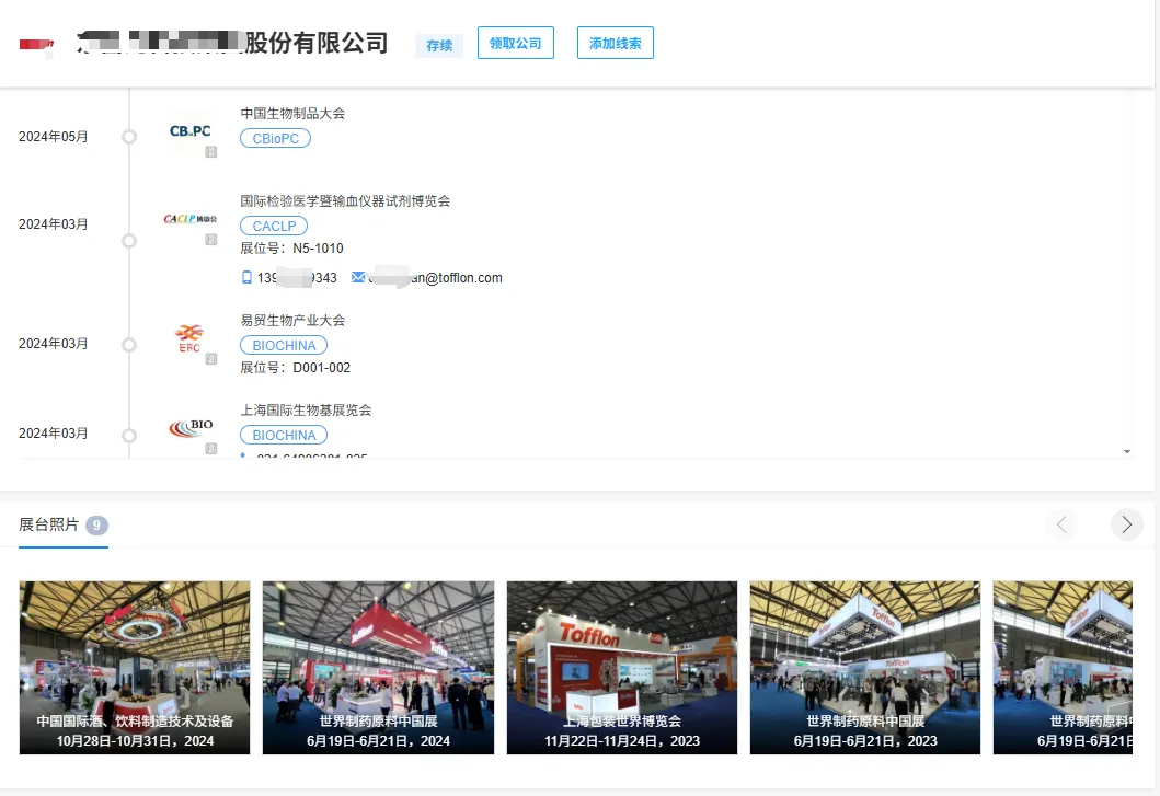 汇总企业参展记录、已报名展会、过往展台照片、网站等,了解企业过往参展行为来沟通未来合作。