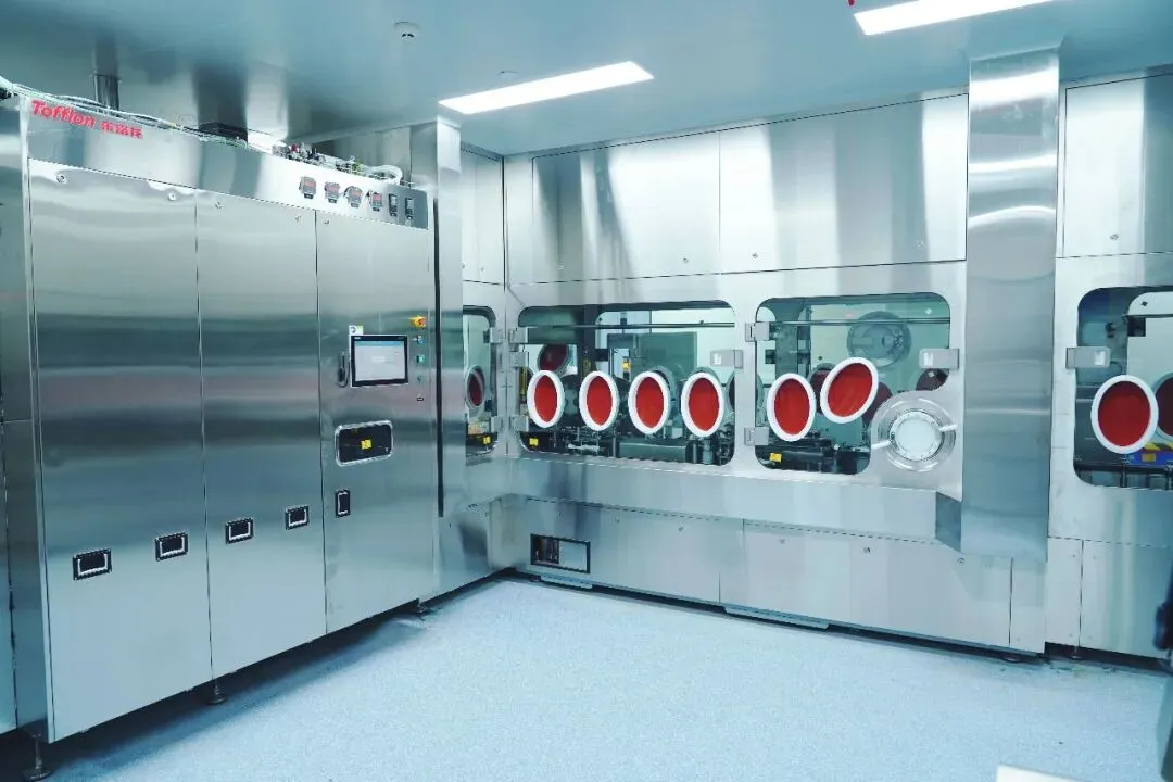 核心配置:冻干制剂生产线配备隔离器灌装联动线、自动进出料冻干系统及一次性灌装系统,可实现2-10R西林瓶规格冻干产品的生产,核心设备采用东富龙生产型冻干机,深度集成隔离器灌装系统与O-RABS设计,构建符合GMP要求的高等级无菌生产环境。
