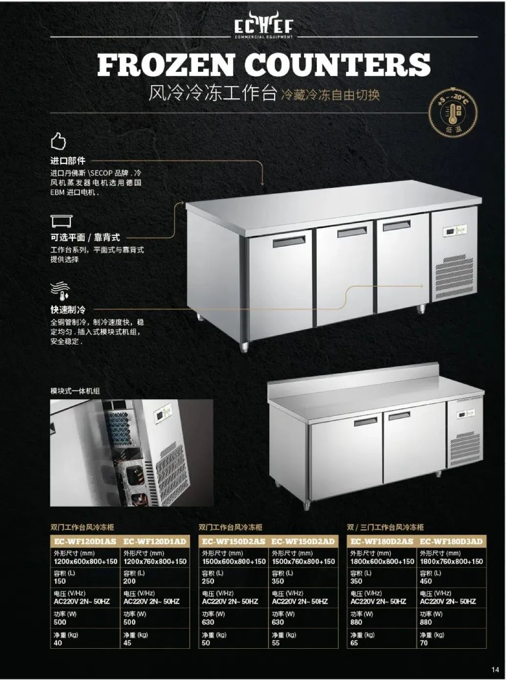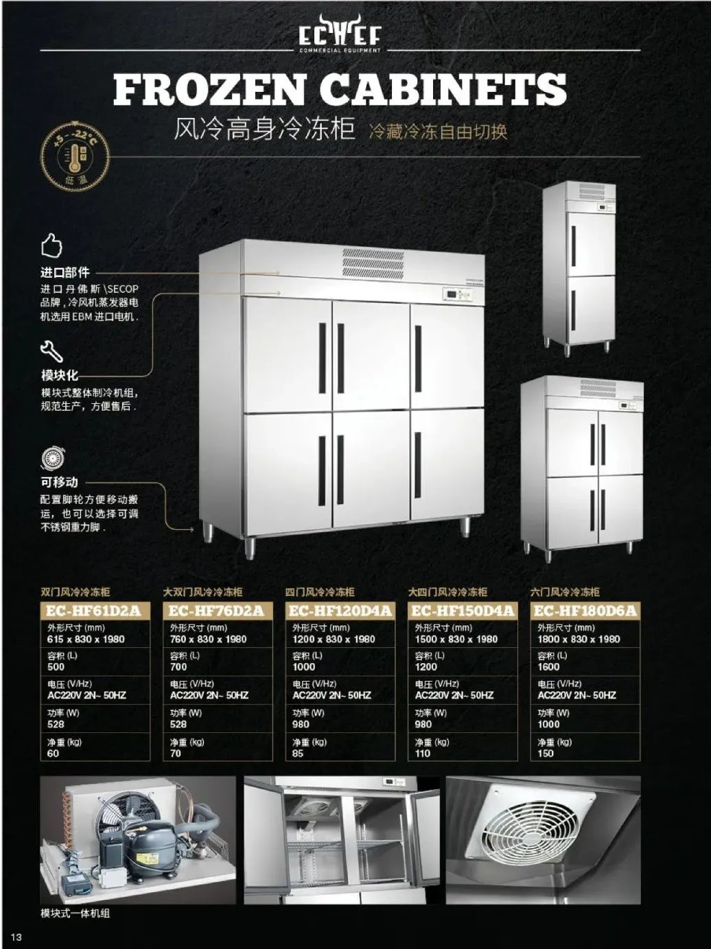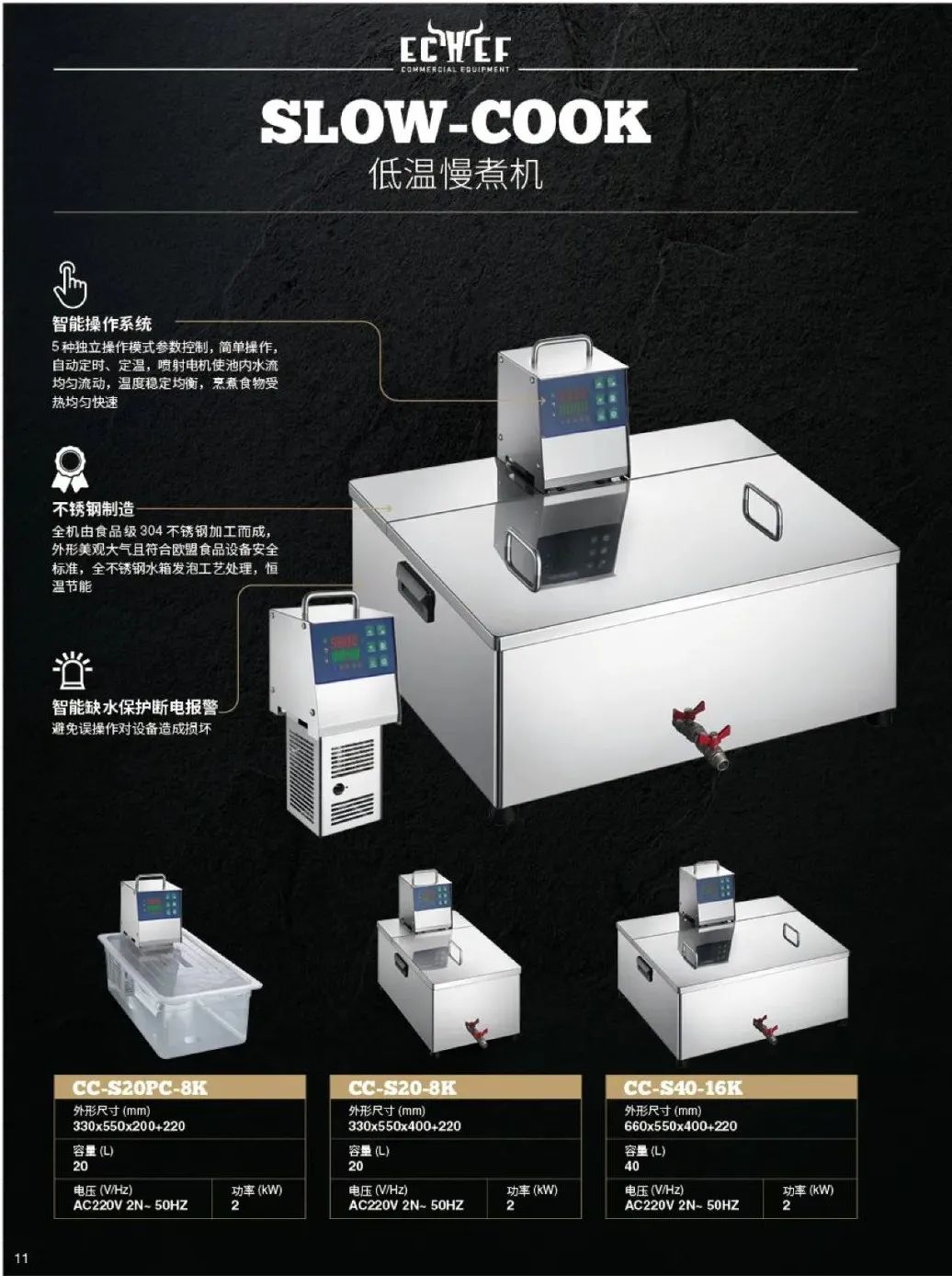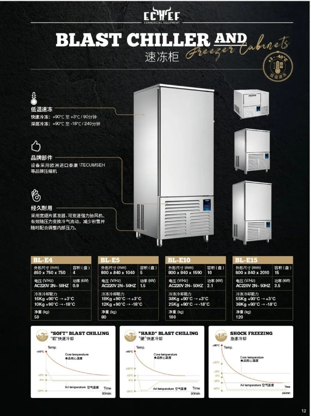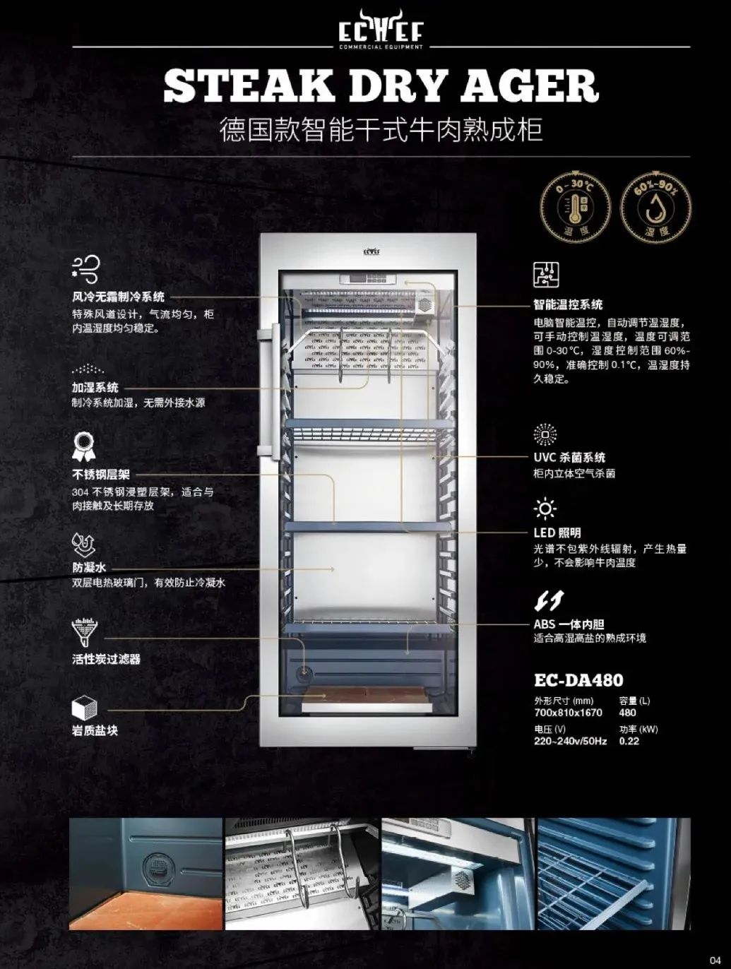 本公司ECHEF品牌的诞生是为了能让厨师能简单地做出一份好牛排,同时满足国内外西餐对专业牛排设备的需求,ECHEF品牌产品包括牛排的储存,加工以及烹饪,每个环节都非常重要,设备包括:风冷厨房冷柜,急速冷冻柜、干式牛肉熟成柜、低温慢煮机、高温牛排烤炉,其中烹饪设备作为最后一道工序,至关重要,高温牛排烤炉分为三大系列,电加热系列(200 °C ~500 °C)、燃气系列(300°C ~800 °C)和果木炭烤系列(250°C ~500 °C),能满足和覆盖所有应用场景,并能满足不同品种肉类和部位的烹饪要求,帮助餐厅提高附加值。