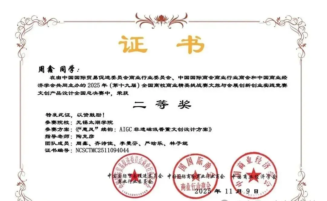 目前,竞赛已进入报名备赛阶段。为帮助参赛团队解决备赛过程中的实际痛点,我们特邀设计与传播赛道国赛二等奖项目“‘惠风’续韵:AIGC 非遗磁吸香薰文创设计方案”负责人周鑫,进行一次从0开始的实战复盘。内容涵盖选题策略、调研方法、团队管理与备赛节奏四大核心环节,助力大家一步到位、高效备赛。
