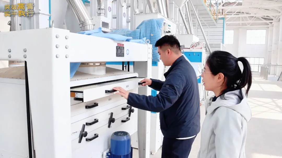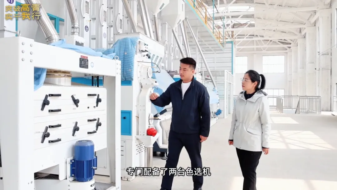 恒晟雲集团负责人 岳成浩:我们这套自动化设备专门配备了两台色选机、抛光机及五次谷糙分离程序,大大提高了产品的加工质量。