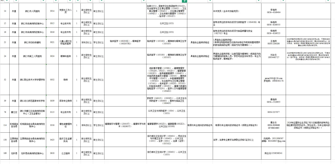 全市事业单位计划引进366人,其中:市直事业单位计划引进89人,区(县)事业单位计划引进277人。具体引才单位、岗位、资格条件及联系方式详见附件1,岗位信息同步在贵州人才博览会、市直主管部门、区(县)人民政府官网发布(附件2)。