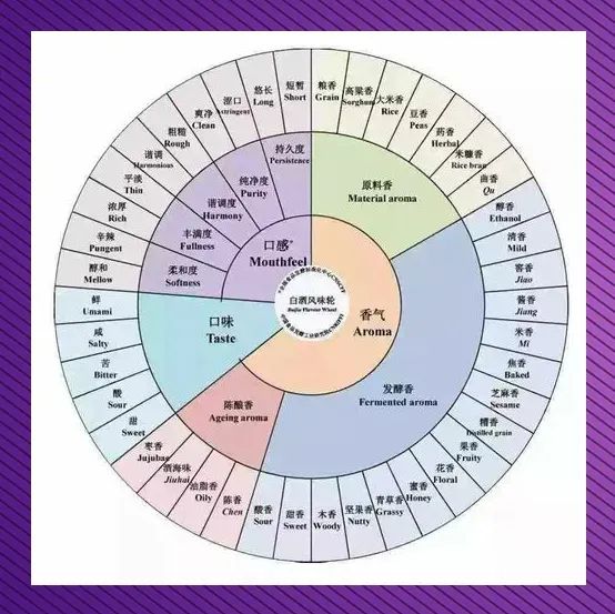 亦称放香。指产品中芳香成分溢散于品评杯口附近空气中,徐徐释放出的香气。指产品香气短促不持久,浮于面上,使人感到不是产品中自然散发的,而是外加的一种香气。香气品质描述词。一指样品在自然状态下由于香气物质分子自然扩散作用喷发出来的香气。另指产品入口后通过咀嚼,组织结构进一步碎片化,以及由于口腔温度通常比其自身的温度高,加剧了香气分子的释放与扩散运动,从而在口腔中感受到了一种强烈的充溢的香气,即满口喷香。焙烤食品特有的气味或口味。常由淀粉与其他成分在高温下产生的特有气味,是一种焦香、甜香、奶香等的复合香。以上其中香味是白酒中特有的香味,每一种香型根据酿造方式的不同,还有很多的香味没有说,也有一些香味是某一种酒水里面没有的,但是就酱香酒来说,很多香味该有的还是有,尤其是陈年酱香老酒,香味更醇,拆开包装就能闻到香味,喝起来的感觉更好。