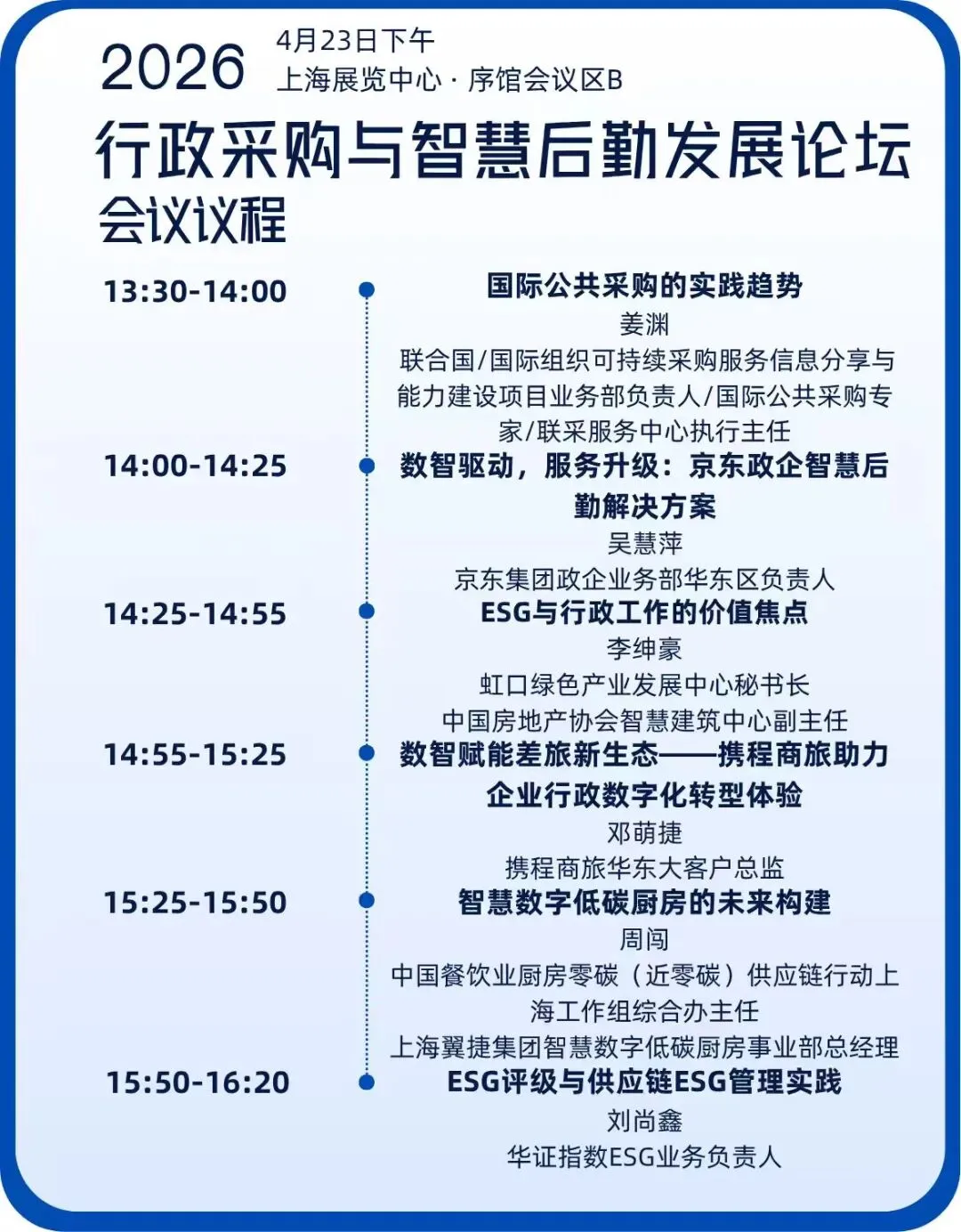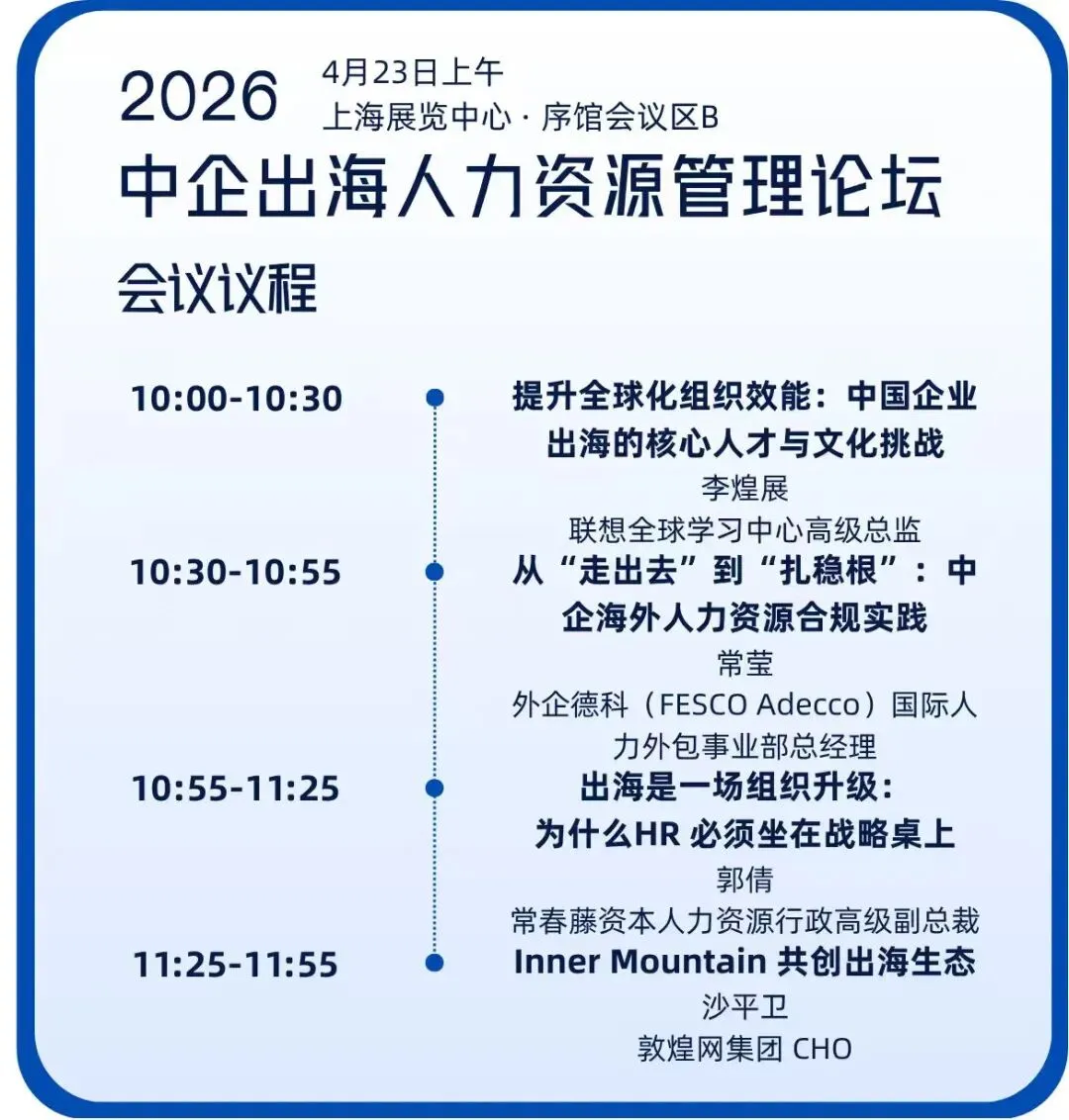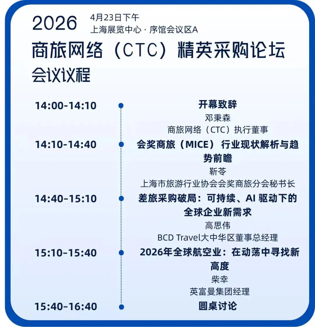 除丰富的展览展示环节外,展会同期将举办智启十五五・AI 赋能企业高质量发展沙龙、绿色采购与 ESG 管理沙龙、中企出海人力资源管理论坛、商旅网络(CTC)精英采购论坛、行政采购与智慧后勤发展论坛、人力资源AI数智化创新管理论坛、智涌新域,人机共生——AI时代组织跃迁与人力价值重塑沙龙等多场高品质的会议沙龙活动,为业内人士搭建专业交流、思想碰撞的平台。来自联想、常春藤资本、前阿里巴巴、念弟实业、沃利中国等企业职能端领军人物、法国里昂商学院的人力资源研究者等50多位后勤采购领域专家担任演讲嘉宾,聚焦中企出海、成本高压破解、组织效率提升、人才效率提升、差旅趋势、AI工具落地、ESG合规建设等行业核心议题,解读行业趋势、探讨核心痛点,分享真知灼见。同时配套举办差旅经理、行政经理、人事经理多场午餐交流会,精准链接人力资源、行政、商旅等不同领域从业者,通过小型化、精准化的交流形式,促进业内人士高效对接、资源共享,助力参会者拓宽行业视野、获取实用解决方案。