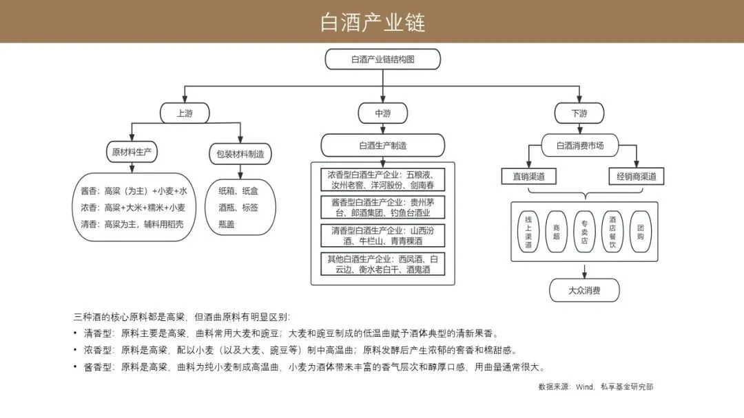 整个白酒产业链通过上游、中游跟下游的这种配合,最终把产品送到消费者手上。