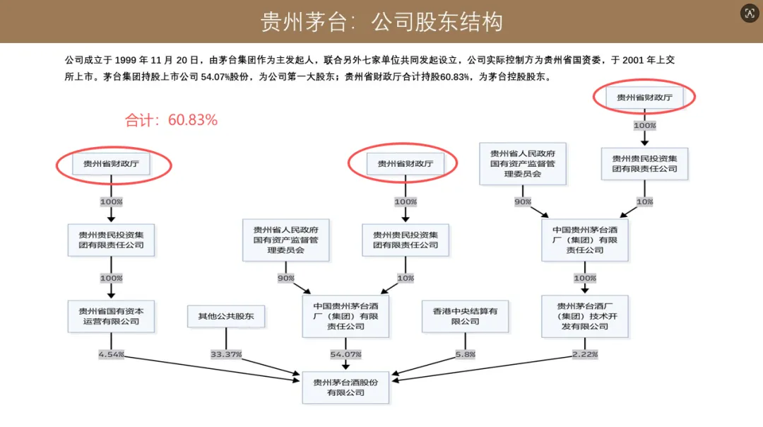 贵州茅台成立是 1999 年,由茅台集团作为主要发起人,联合另外 7 家单位共同发起设立,公司实际为贵州省国资委。
