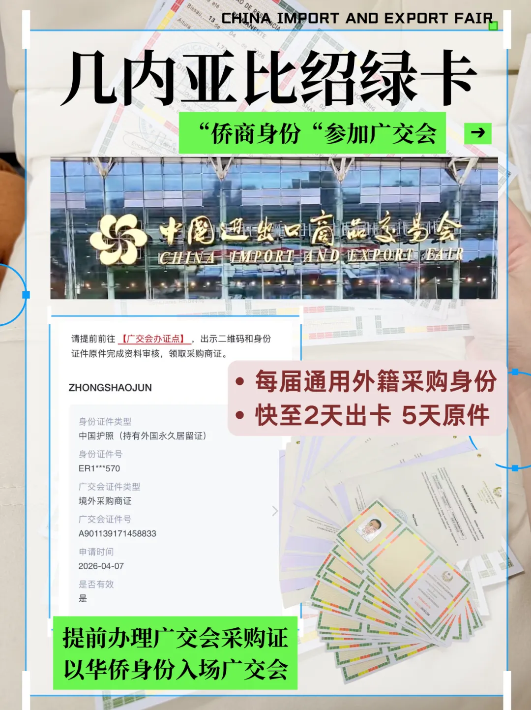 今年广交会期间,他抱着试试看的心态,在广交会后台尝试用“几内亚比绍绿卡”以侨商身份直接申请采购商证。