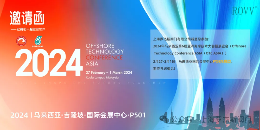 2月27日-3月1日,罗杰斯将携旗下明星产品高性能双偏心蝶阀和两片式球阀参加第6届亚洲离岸技术大会暨展览会。此次展会将于马来西亚国际会展中心举行,展位号为P501。