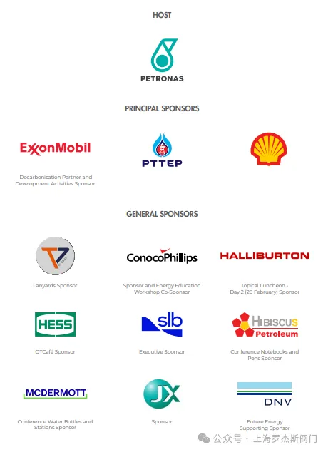 展会集中了世界知名的企业,如马来西亚国家石油、贝克休斯、哈里伯顿、壳牌等。国家展团包括:中国、马来西亚、加拿大、澳大利亚、英国、韩国、日本、新加坡、荷兰等。
