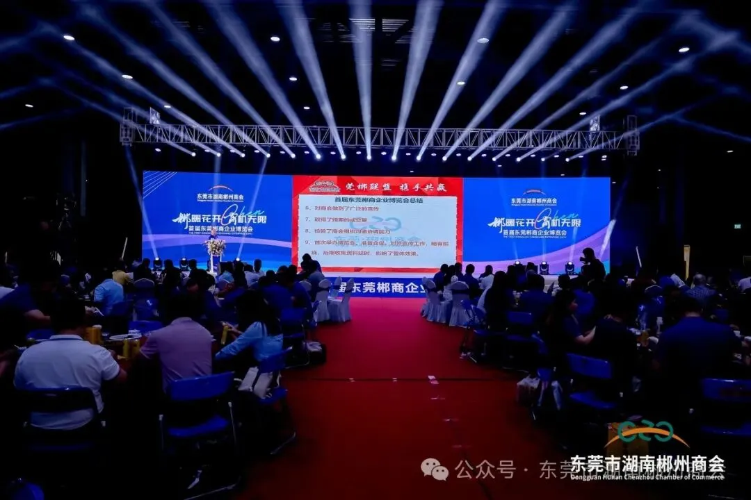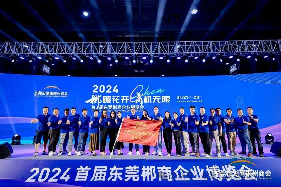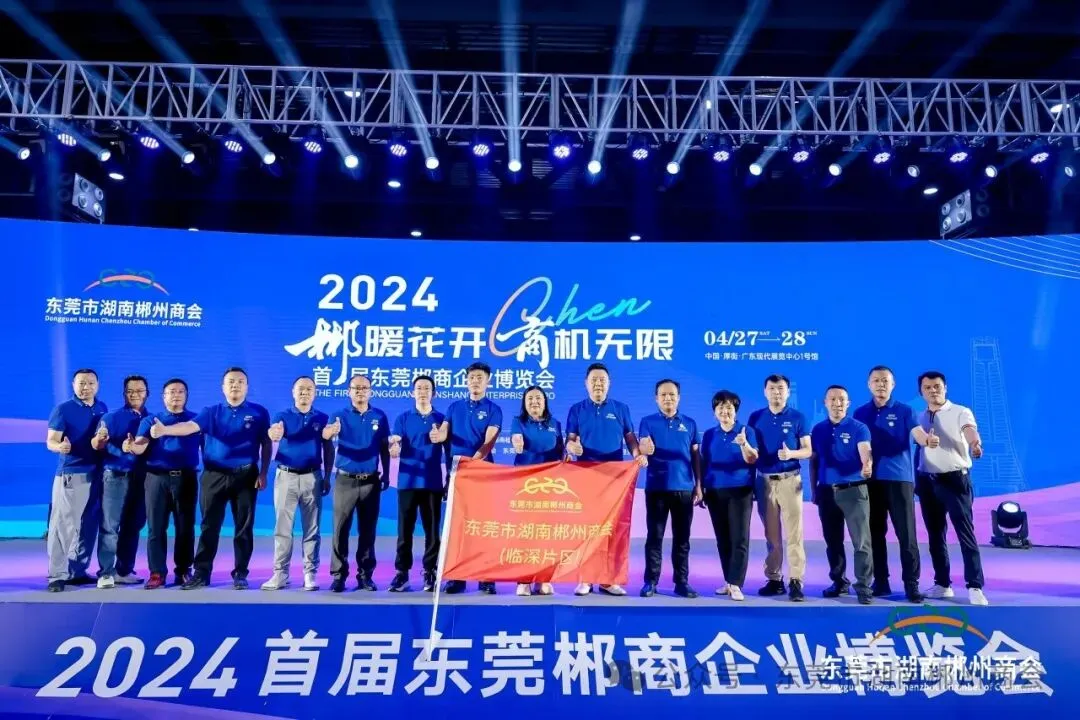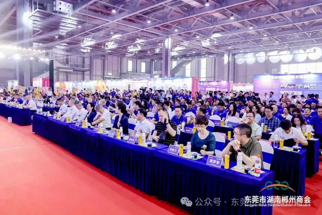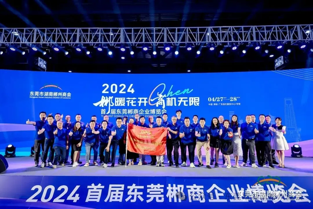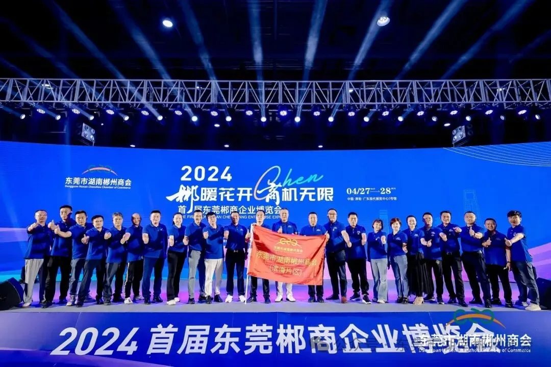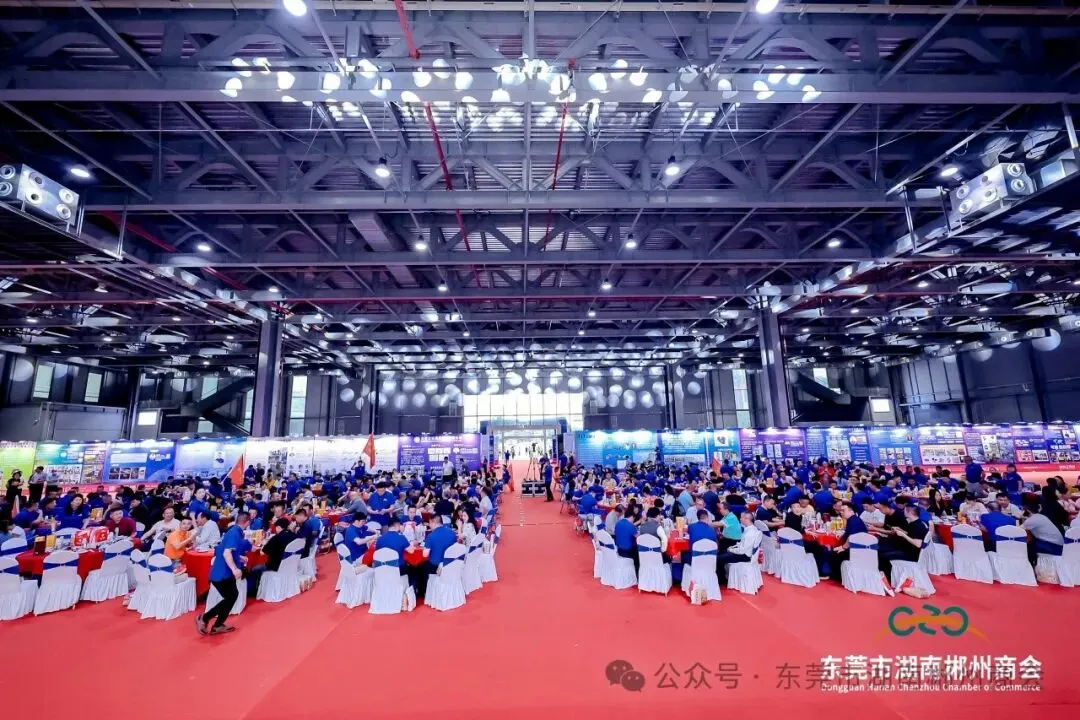 “春暖花开·商机无限”,2024年4月28日,首届东莞郴商企业博览会晚宴在东莞厚街广东现代展览中心1号馆举行。