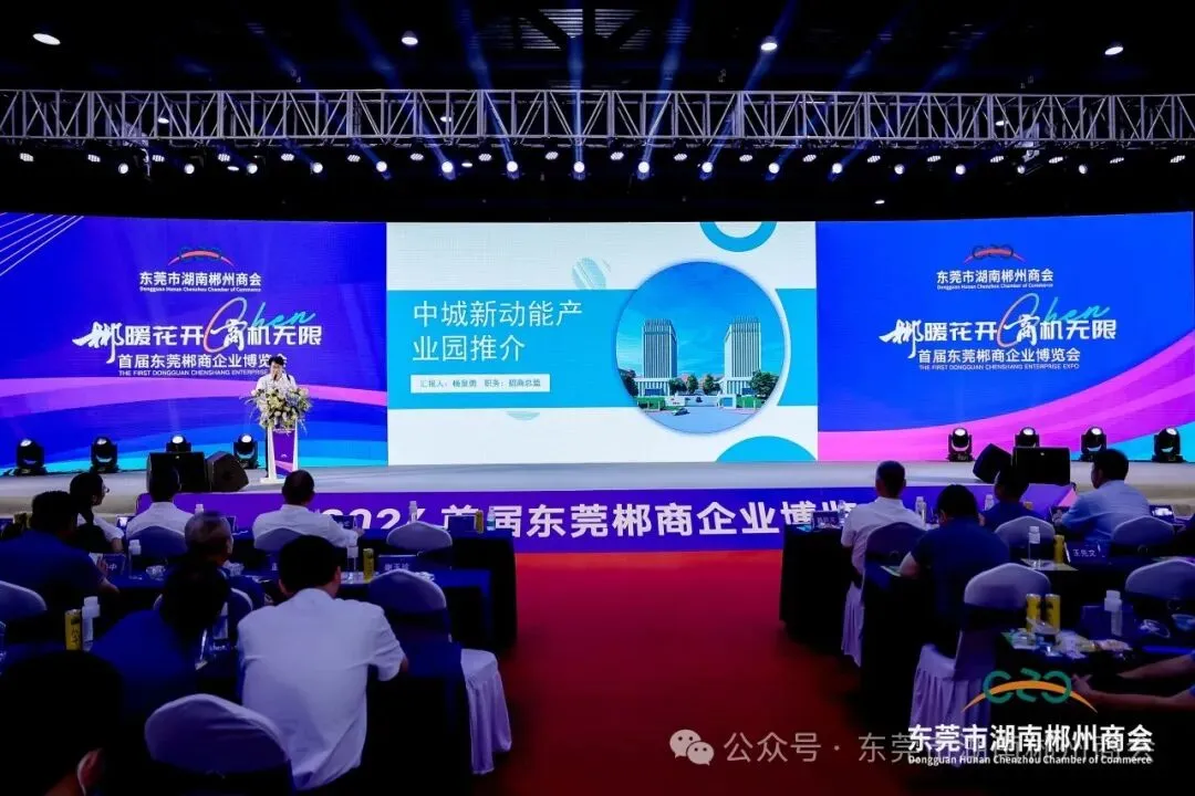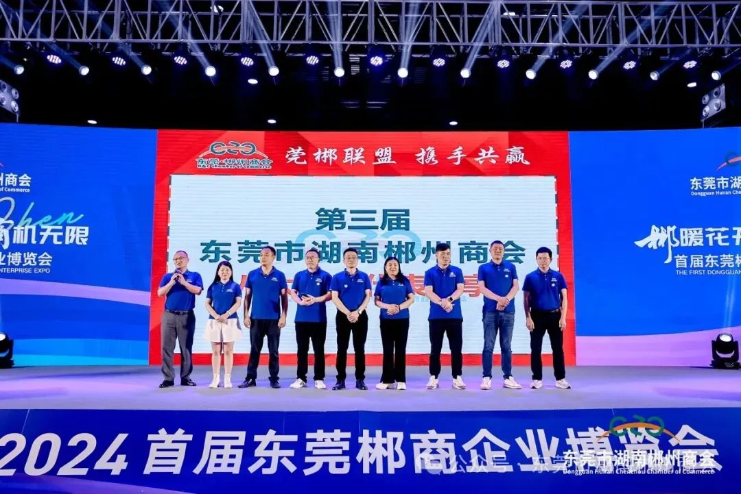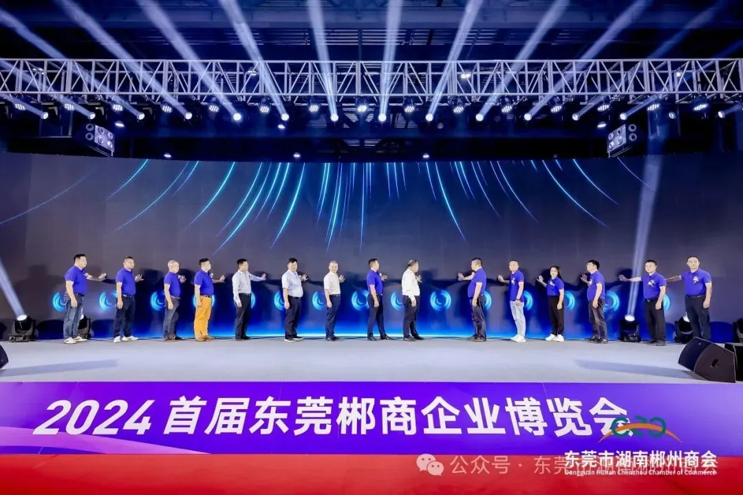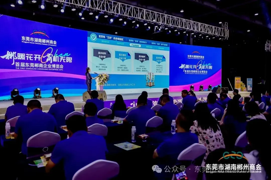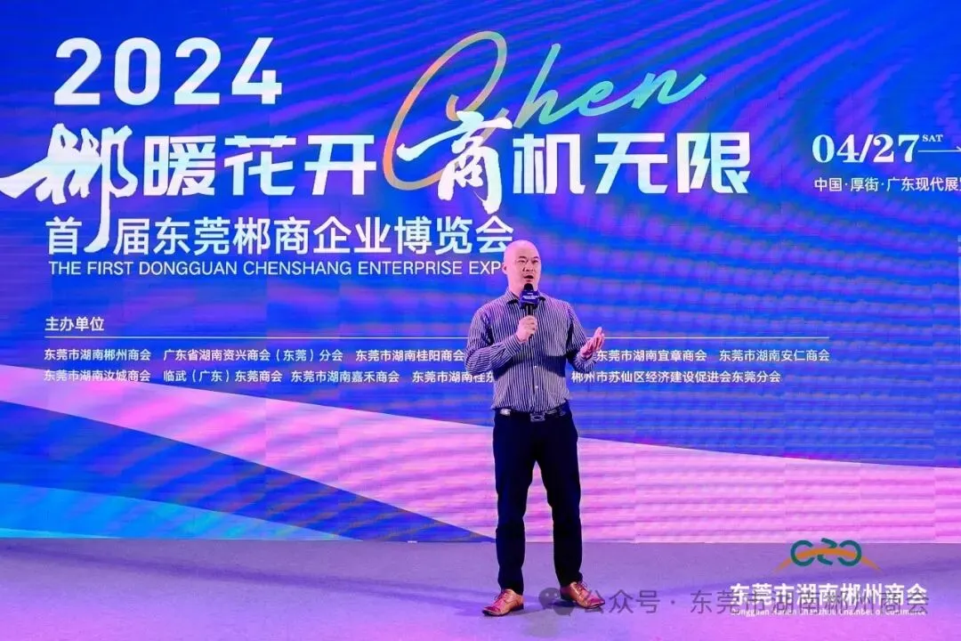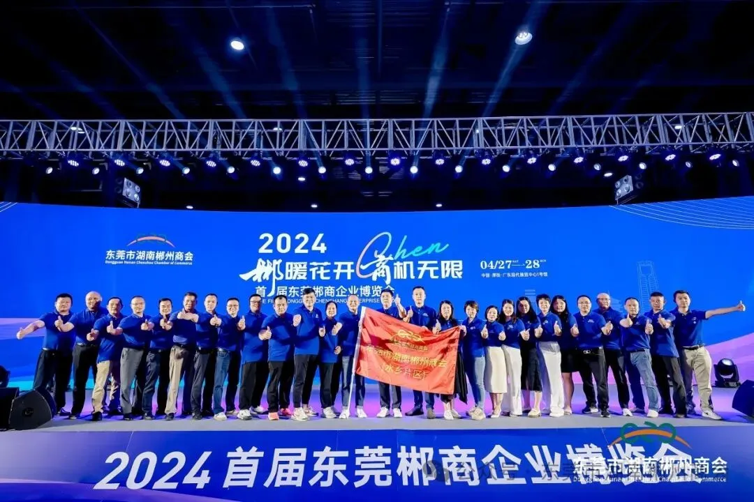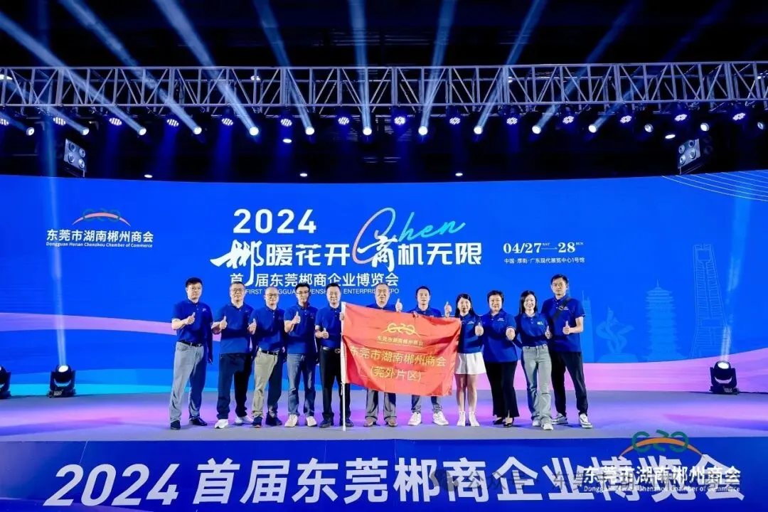 “春暖花开·商机无限”,2024年4月28日,首届东莞郴商企业博览会晚宴在东莞厚街广东现代展览中心1号馆举行。