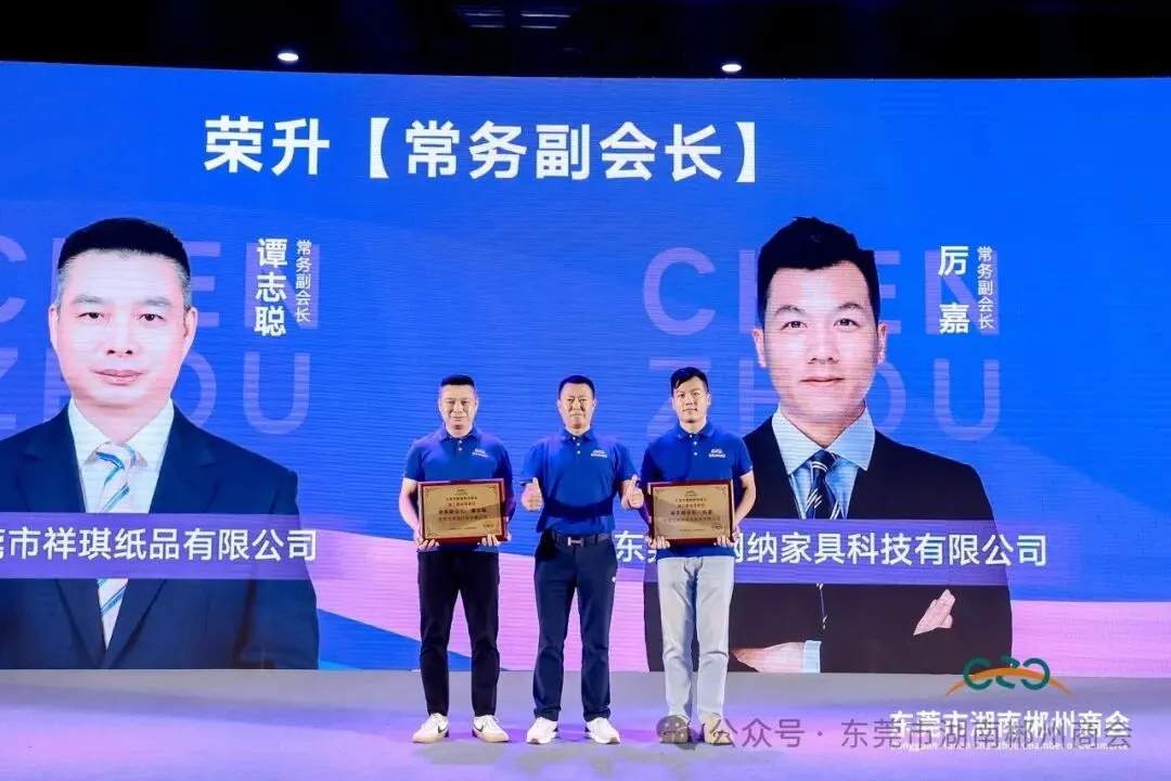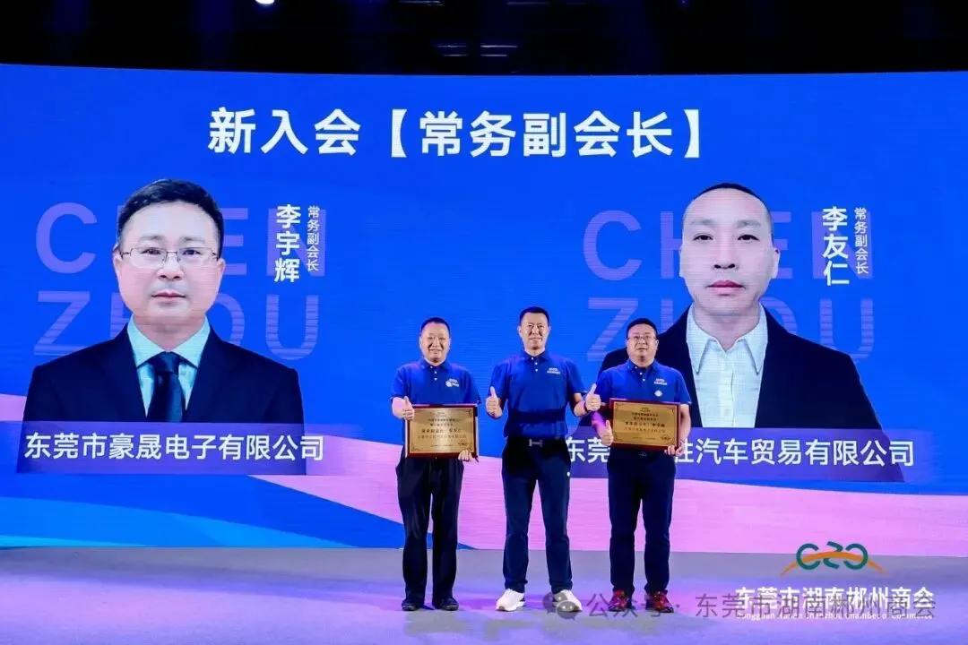 会长陈克为首届东莞郴商企业博览会赞助商颁发赞助商牌匾。