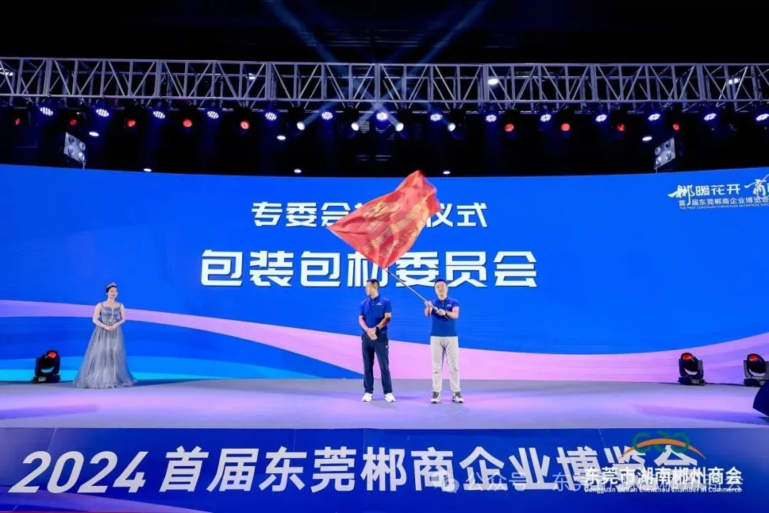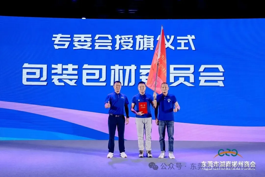 会长陈克将包装包材委员会旗授予包装包材委员会主任周斌周总。