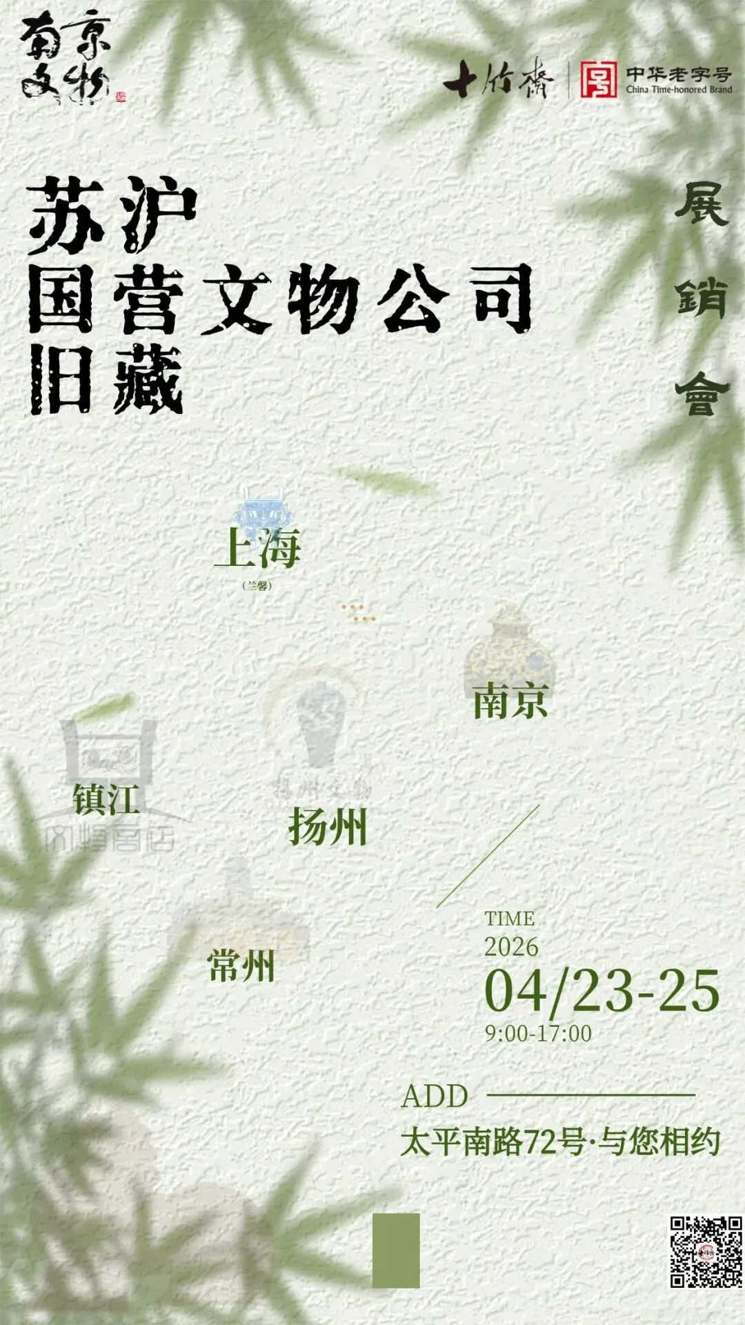 芳菲四月,文脉相聚。中华老字号十竹斋·南京文物公司,将于4月23日—25日举办苏沪地区国有文物商店旧藏文物展销会,共启春日文博雅集。