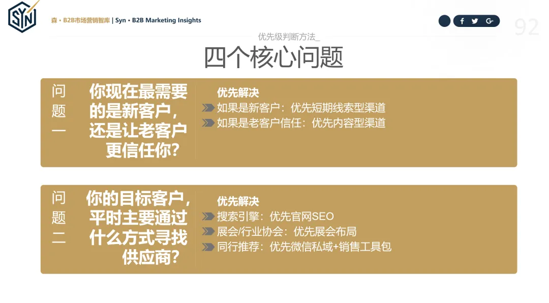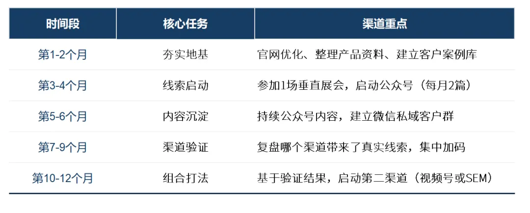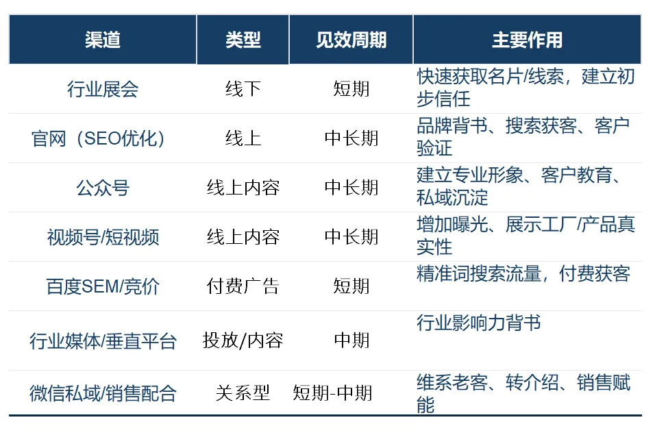 所以再次强调一下,正确做法不是“什么都做一点”,而是围绕客户决策路径,先做最能产生杠杆的渠道。