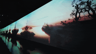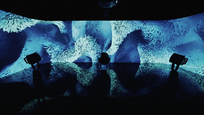 伴随着科技的高速发展,新型视听、人工智能、5G、AR、VR等新媒体技术在沉浸式体验中得到了充分的应用和发展。科技与传统文化的巧妙结合发展成为一种高品质的体验形式,艺术展览通过光影与交互技术、装置艺术、AR、VR等新媒体技术,为参观者创造一种具有文化内涵、充分沉浸的新型展览体验。艺术展馆的展陈环境通常选择在室内,封闭式的场地和不透风的墙面为光影与投影提供了绝佳的条件,成为实现沉浸式体验的最佳载体。黑色的遮光窗帘能更好地表现光、投影、全息影像,给参观者带来全新的视觉感受。