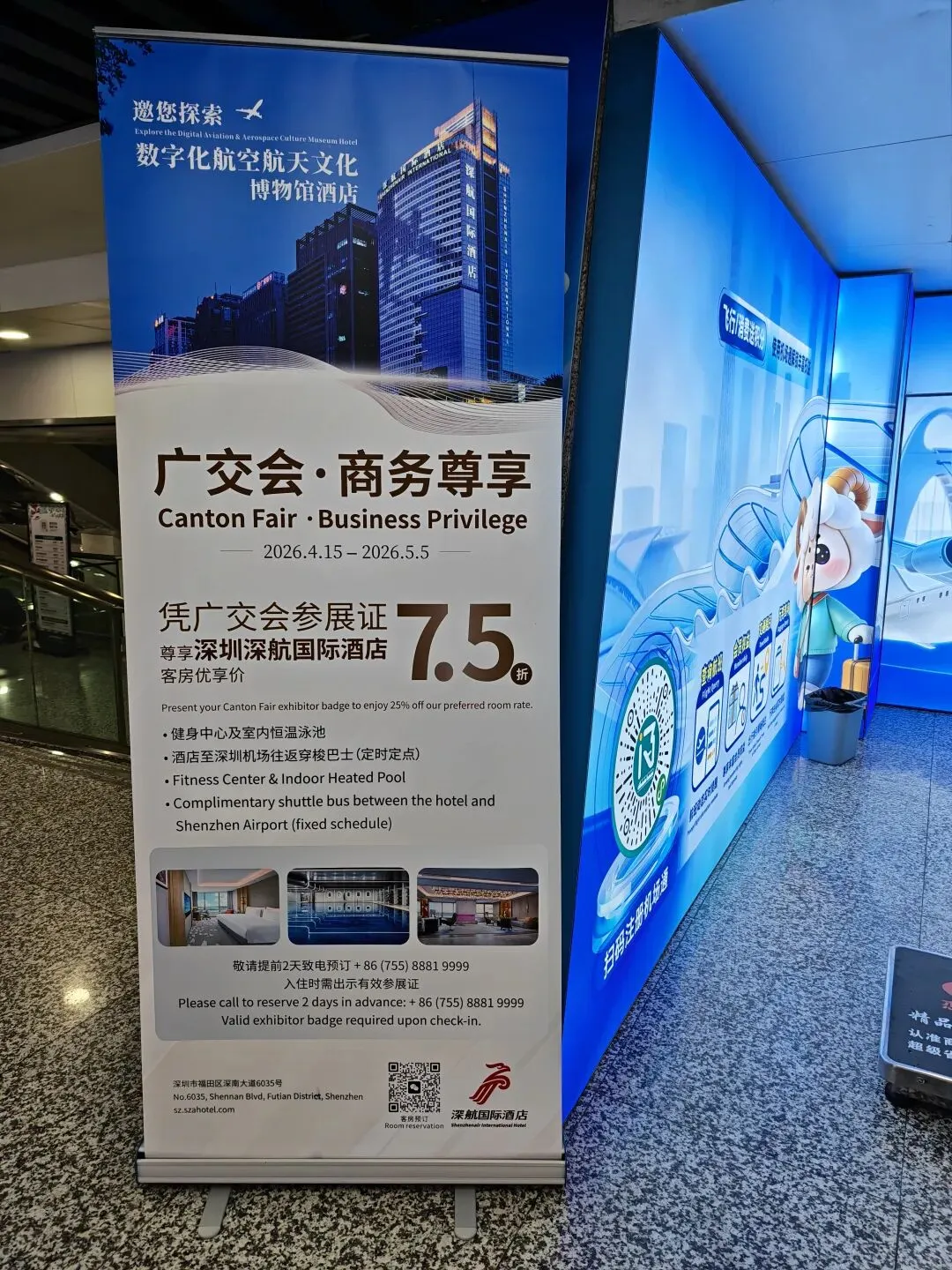 5月5日前,旅客凭广交会参展证,可尊享深圳深航国际酒店客房优享价——7.5折。