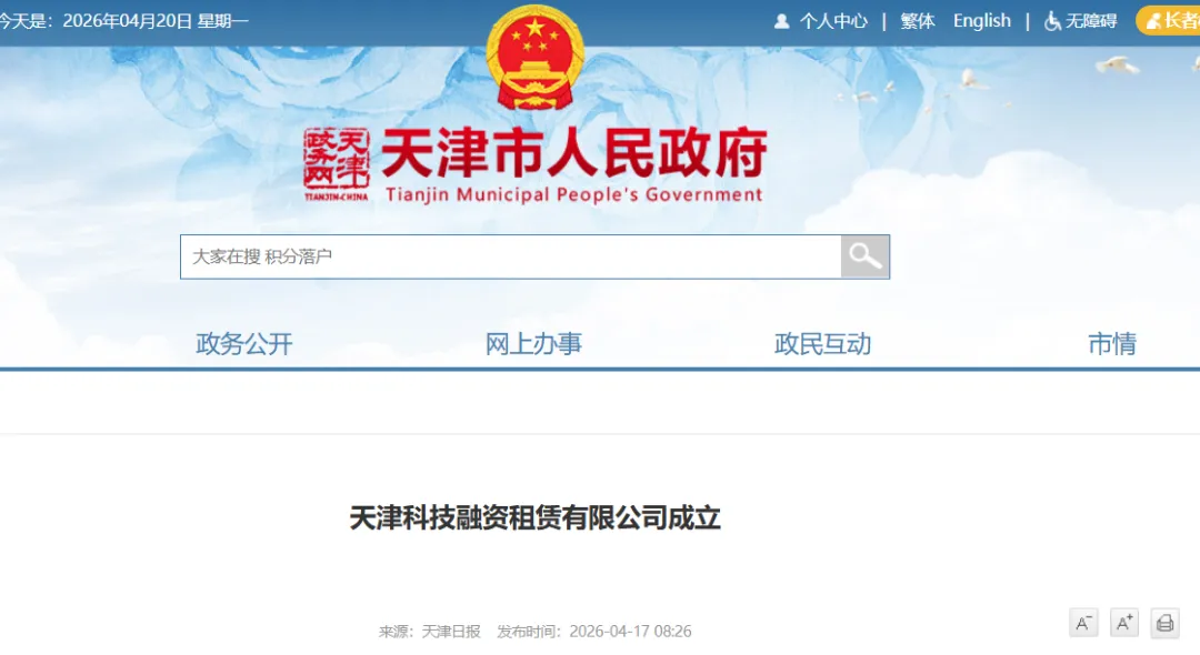 据天津市人民政府4月17日消息:近日,由天津滨海高新区和东疆综合保税区联合成立的天津科技融资租赁有限公司正式落户高新区,以科技租赁为核心业务,将通过“投租联动”,打造集产业金融、产业投资、产业投行、产业服务于一体的产融结合模式,以租赁业务服务产业发展。