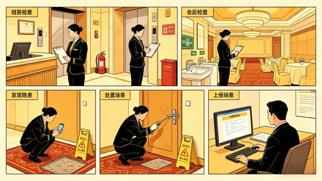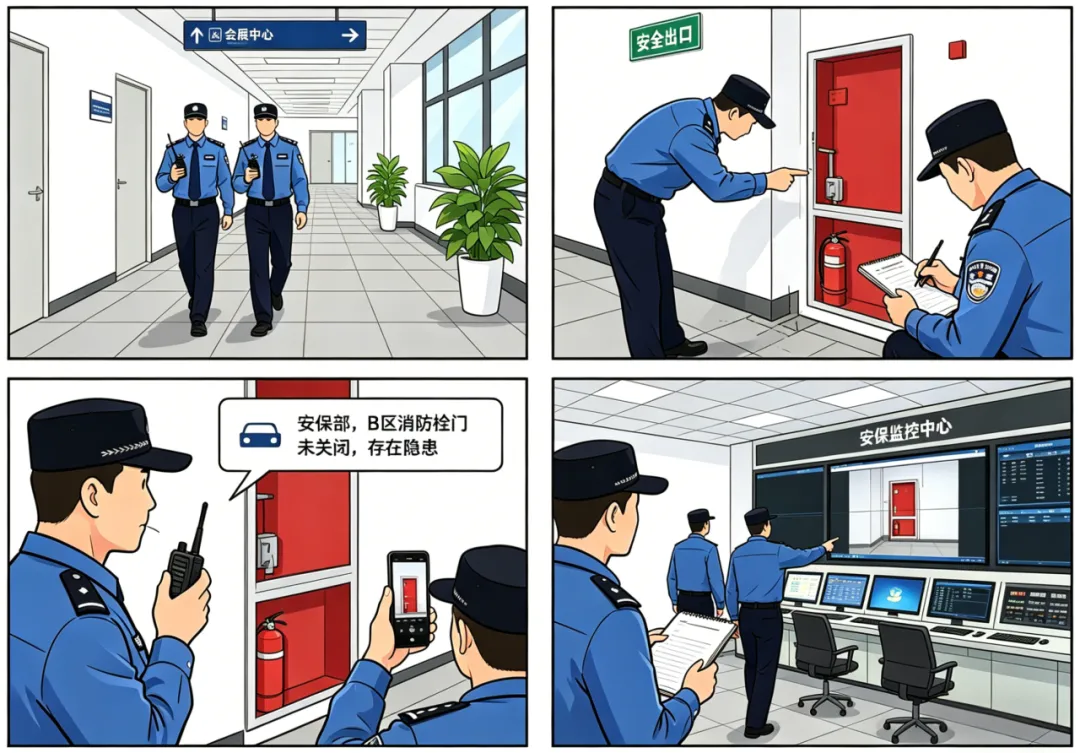 按要求巡查公共区域,发现隐患及时上报