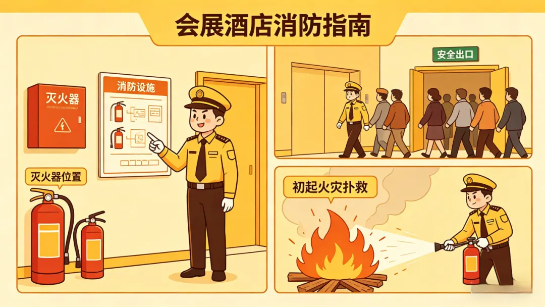 熟悉灭火器、消防设施及安全出口位置,会引导疏散、会扑救初起火灾