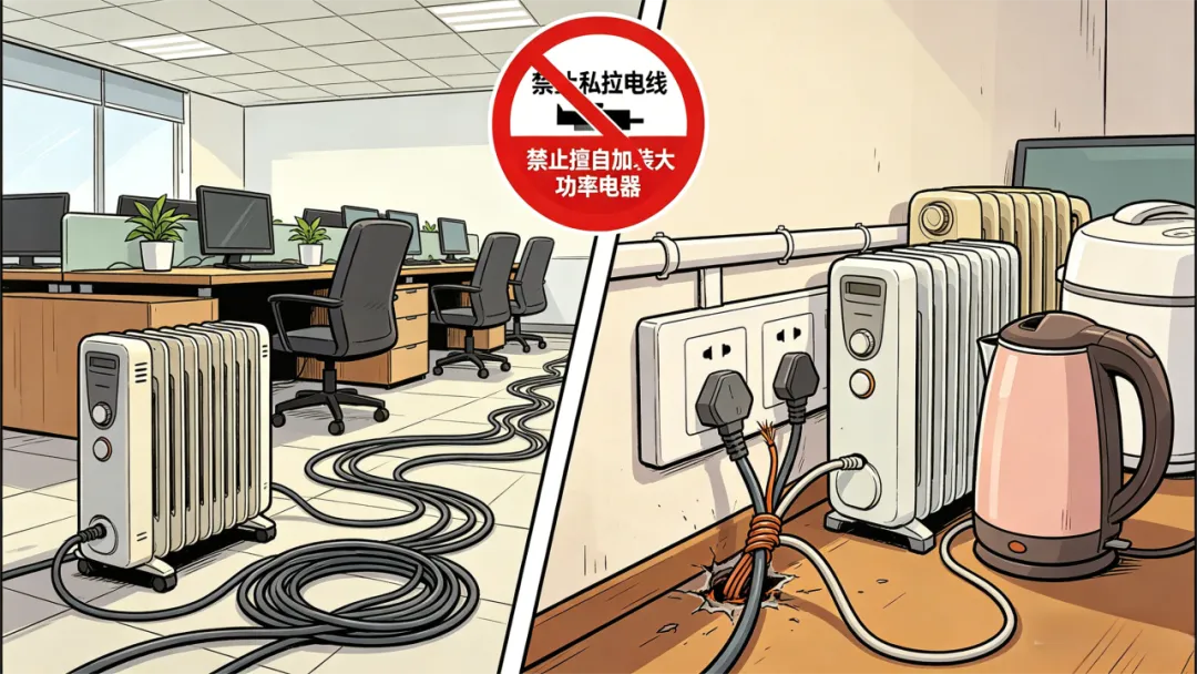 严禁私拉电线、擅自加装大功率电器