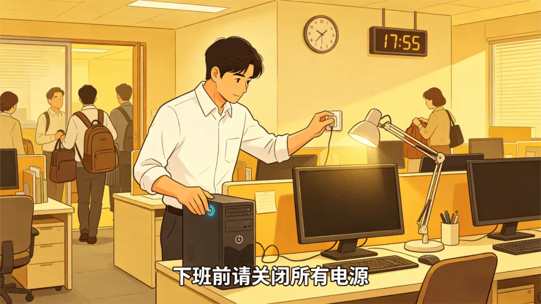下班前关闭所有电源,排查并消除火灾隐患