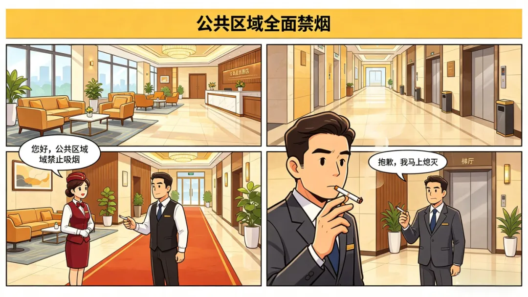 公共区域全面禁烟,及时劝阻违规吸烟行为