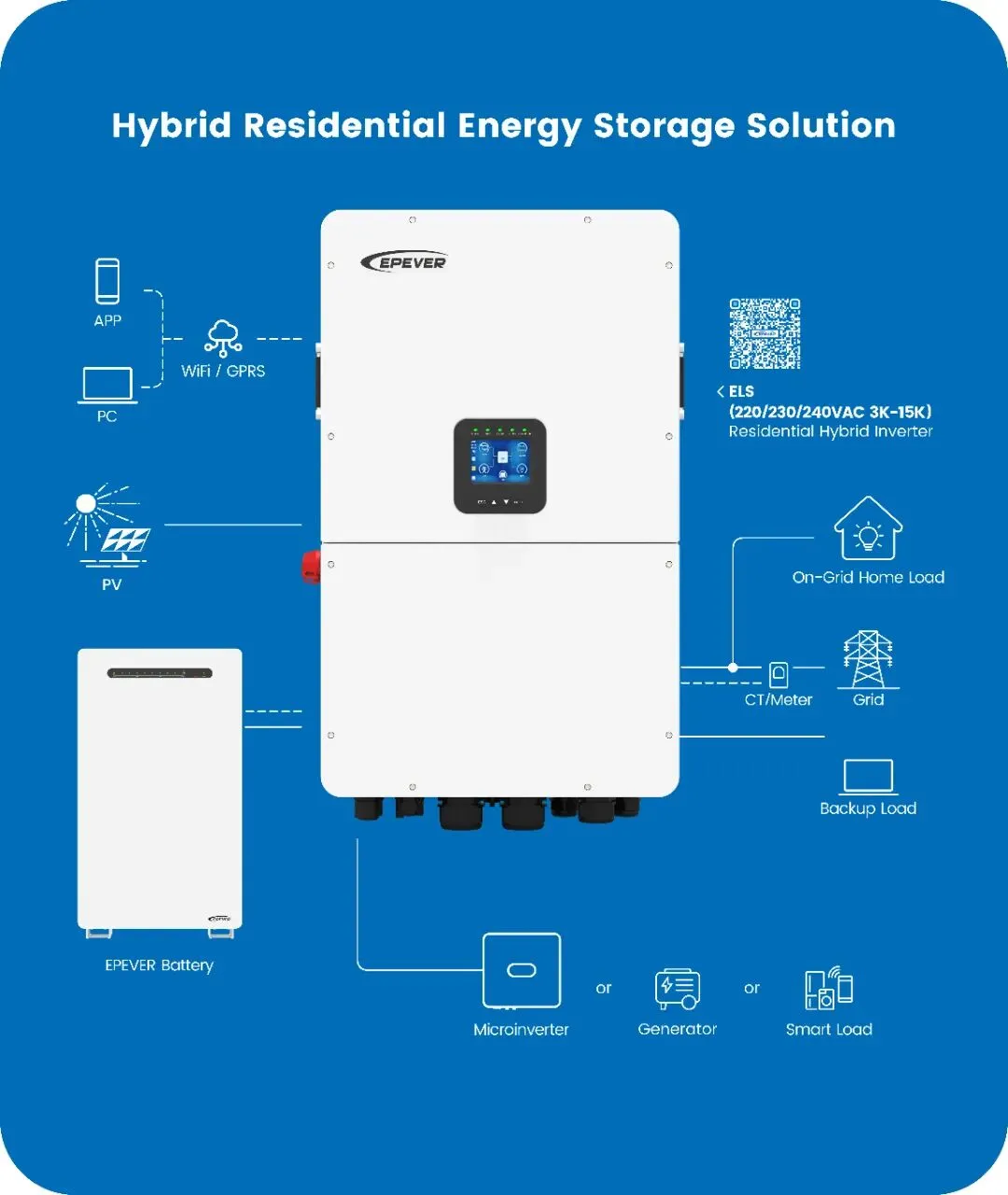 · ELS系列并网储能逆变器(3-6kW/7.5-15kW):高效能量调度,适配家庭及小型工商业并网储能系统。